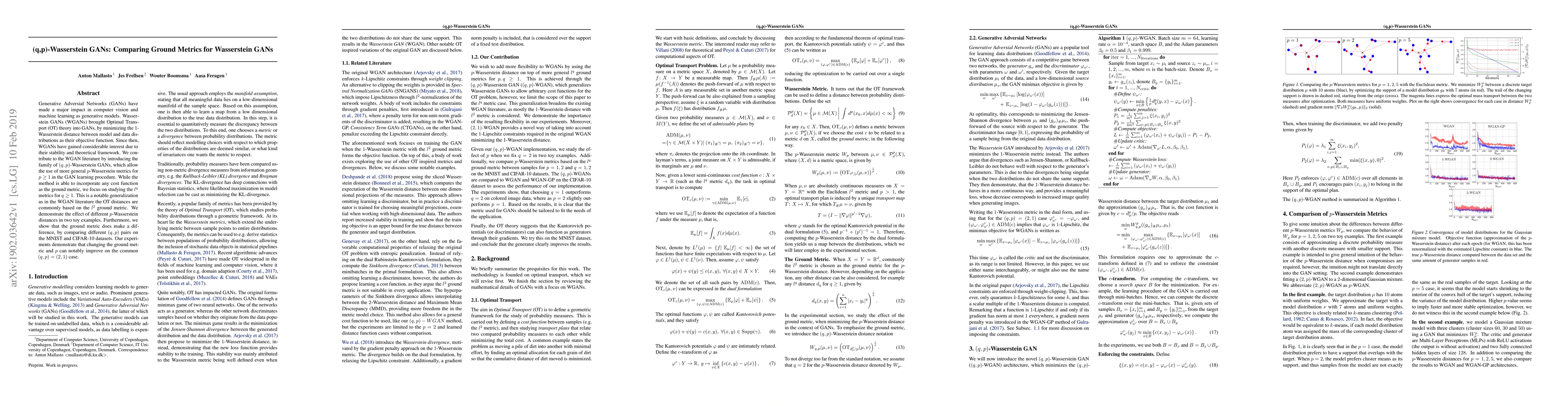 The paper introduces (q,p)-Wasserstein GANs, a generalization of Wasserstein GANs (WGANs) that incorporates more general p-Wasserstein metrics for p ≥ 1, focusing on l^q metrics for q ≥ 1. It compares different (q,p) pairs on MNIST and CIFAR-10 datasets to demonstrate the impact of varying ground metrics and p values.