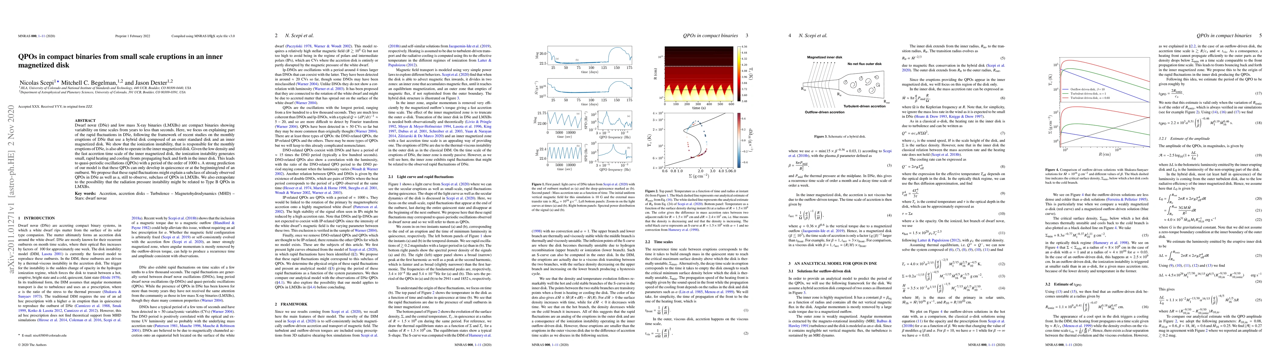 Dwarf nov\ae\ (DNe) and low mass X-ray binaries (LMXBs) are compact binaries showing variability on time scales from years to less than seconds. Here, we focus on explaining part of the rapid fluctuations in DNe, following the framework of recent studies on the monthly eruptions of DNe that use a hybrid disk composed of an outer standard disk and an inner magnetized disk. We show that the ionization instability, that is responsible for the monthly eruptions of DNe, is also able to operate in the inner magnetized disk. Given the low density and the fast accretion time scale of the inner magnetized disk, the ionization instability generates small, rapid heating and cooling fronts propagating back and forth in the inner disk. This leads to quasi-periodic oscillations (QPOs) with a period of the order of $1000$ s. A strong prediction of our model is that these QPOs can only develop in quiescence or at the beginning/end of an outburst. We propose that these rapid fluctuations might explain a subclass of already observed QPOs in DNe as well as a, still to observe, subclass of QPOs in LMXBs. We also extrapolate to the possibility that the radiation pressure instability might be related to Type B QPOs in LMXBs.