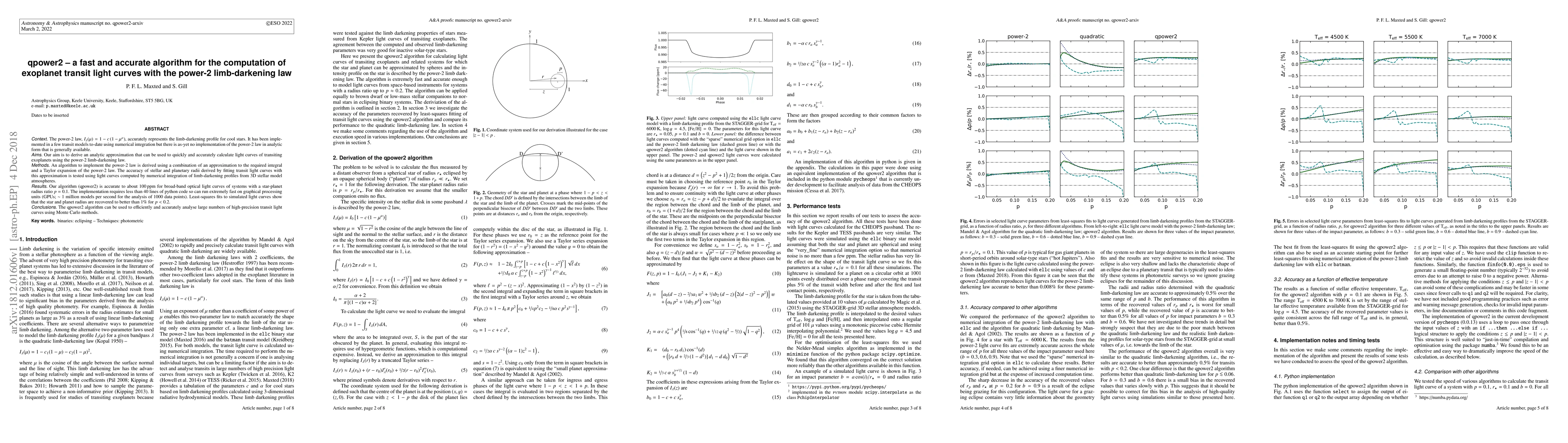 The qpower2 algorithm provides a fast and accurate method for computing exoplanet transit light curves using the power-2 limb-darkening law, achieving high precision with minimal computational resources. It enables efficient analysis of large datasets, with the ability to recover stellar and planetary radii to better than 1% accuracy.
