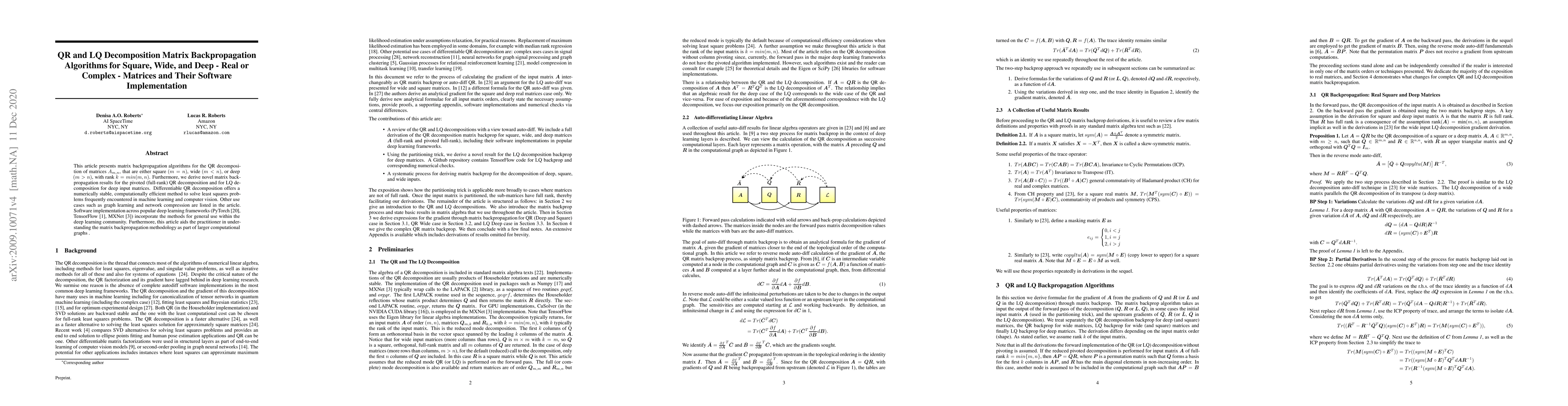 This paper introduces new algorithms for QR and LQ decomposition of matrices in machine learning, enabling efficient solutions to least squares problems with stable numerical results, applicable to square, wide, and deep matrices.