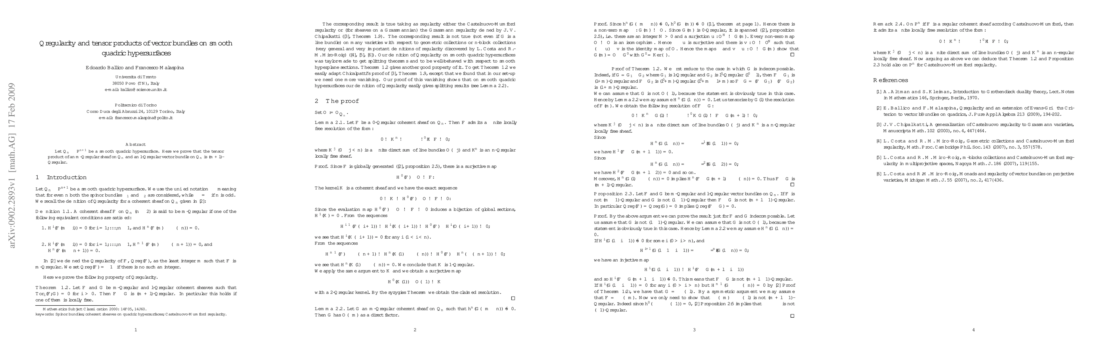 The paper proves that the tensor product of an m-Qregular sheaf and an l-Qregular vector bundle on a smooth quadric hypersurface is (m+l)-Qregular.