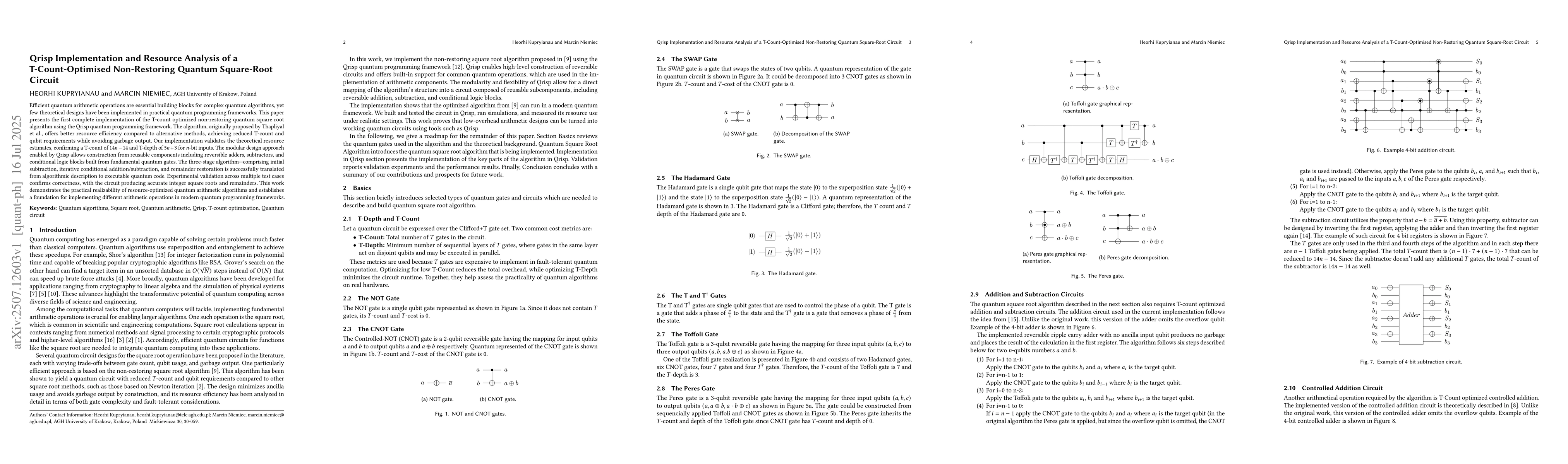Efficient quantum arithmetic operations are essential building blocks for complex quantum algorithms, yet few theoretical designs have been implemented in practical quantum programming frameworks. This paper presents the first complete implementation of the T-count optimized non-restoring quantum square root algorithm using the Qrisp quantum programming framework. The algorithm, originally proposed by Thapliyal et al., offers better resource efficiency compared to alternative methods, achieving reduced T-count and qubit requirements while avoiding garbage output. Our implementation validates the theoretical resource estimates, confirming a T-count of 14n-14 and T-depth of 5n+3 for n-bit inputs. The modular design approach enabled by Qrisp allows construction from reusable components including reversible adders, subtractors, and conditional logic blocks built from fundamental quantum gates. The three-stage algorithm - comprising initial subtraction, iterative conditional addition/subtraction, and remainder restoration is successfully translated from algorithmic description to executable quantum code. Experimental validation across multiple test cases confirms correctness, with the circuit producing accurate integer square roots and remainders. This work demonstrates the practical realizability of resource-optimized quantum arithmetic algorithms and establishes a foundation for implementing different arithmetic operations in modern quantum programming frameworks.
