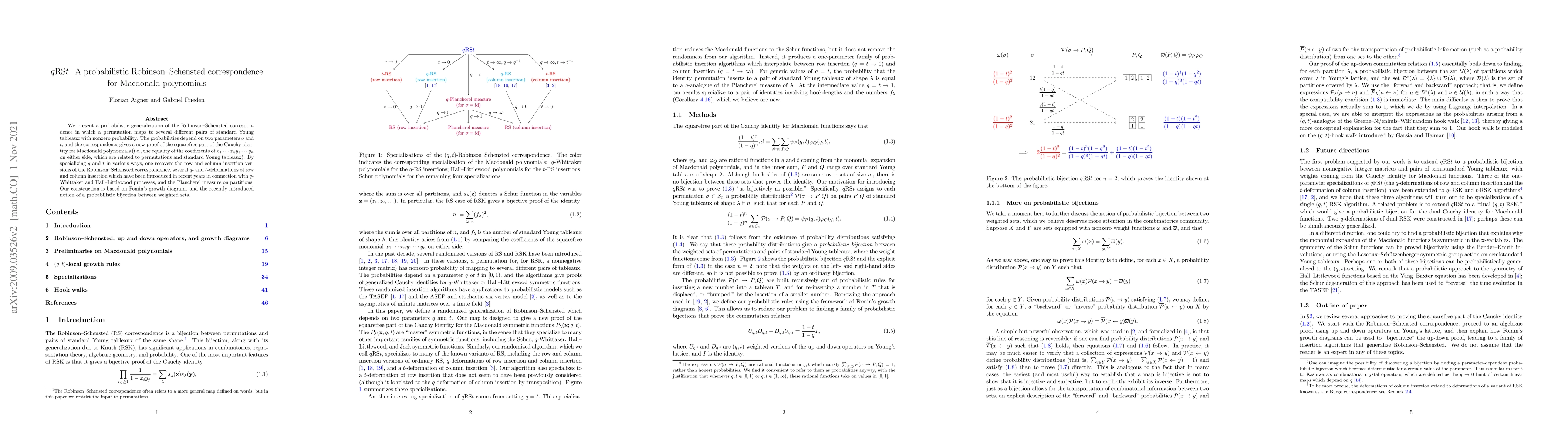 The paper introduces a probabilistic framework for the Robinson-Schensted correspondence, extending it to Macdonald polynomials and providing a new proof of the Cauchy identity.