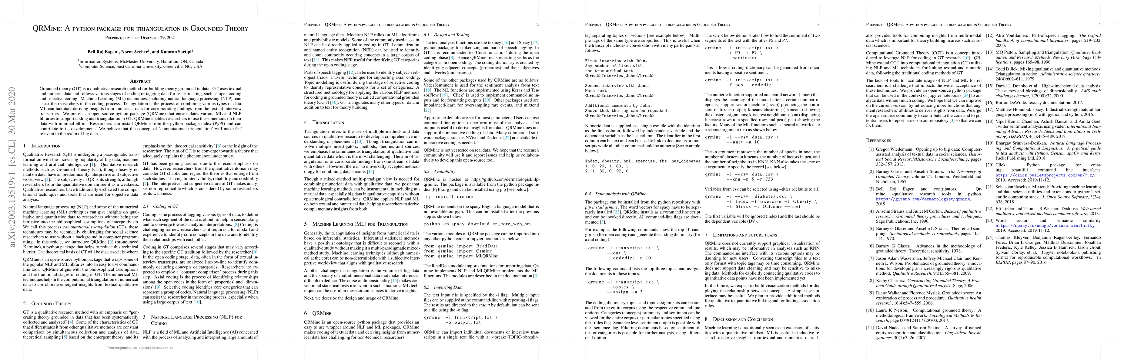 The research introduces QRMine, an open-source Python package that integrates Machine Learning (ML) and Natural Language Processing (NLP) libraries to support coding and triangulation in Grounded Theory (GT). QRMine simplifies the use of computational techniques for qualitative researchers, aligning with traditional GT stages and facilitating the integration of numerical data into qualitative analysis.