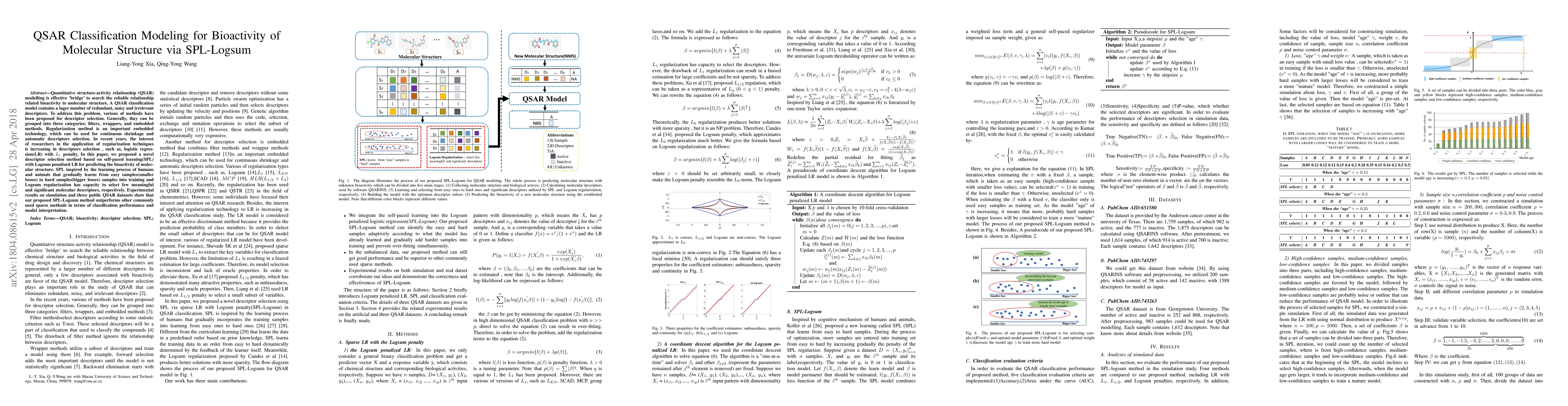 A novel QSAR classification method, SPL-Logsum, is proposed for selecting molecular descriptors to predict bioactivity, outperforming other sparse methods in classification performance and model interpretation.