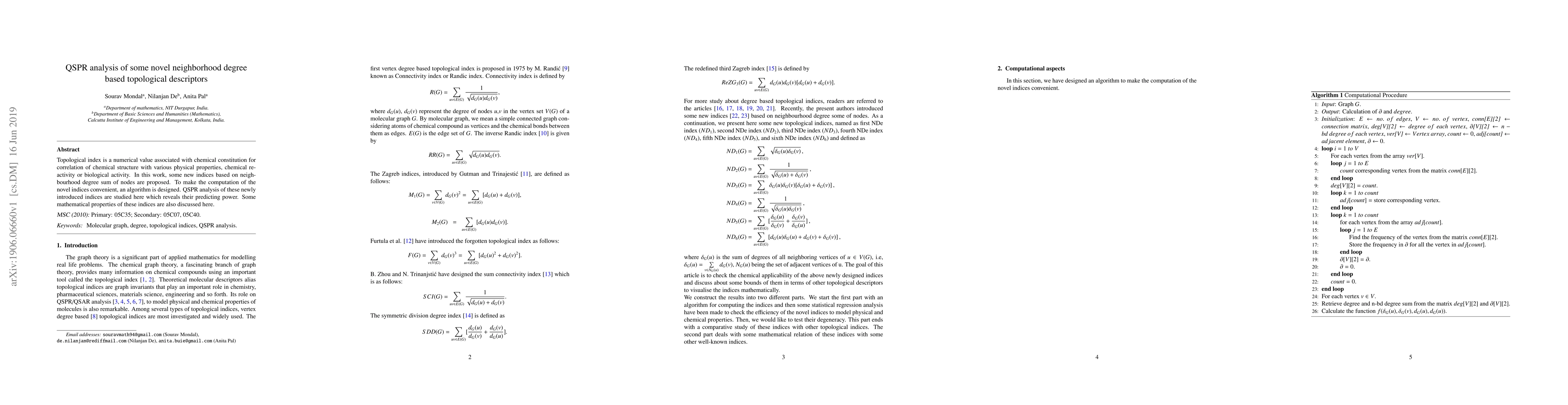 This paper proposes new topological indices based on neighborhood degree sum, designs a computation algorithm, and conducts QSPR analysis to demonstrate their predictive power for correlating chemical structure with physical properties, chemical reactivity, or biological activity. Mathematical properties of these indices are also explored.