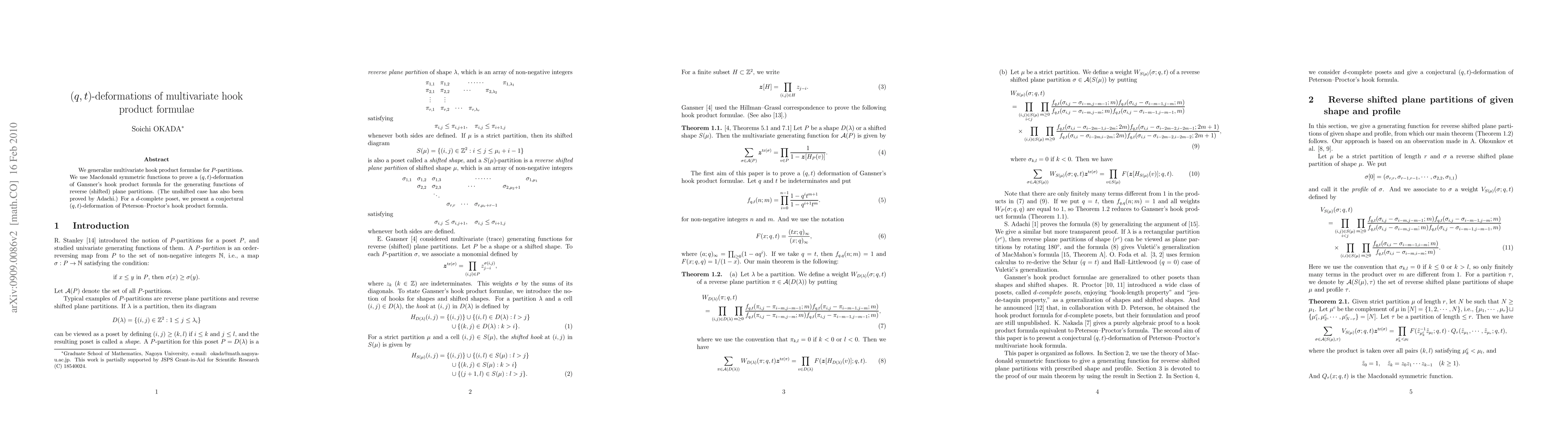 The research provides a new (q,t)-deformation of Gansner's hook product formula and generalizes multivariate hook product formulae for P-partitions.