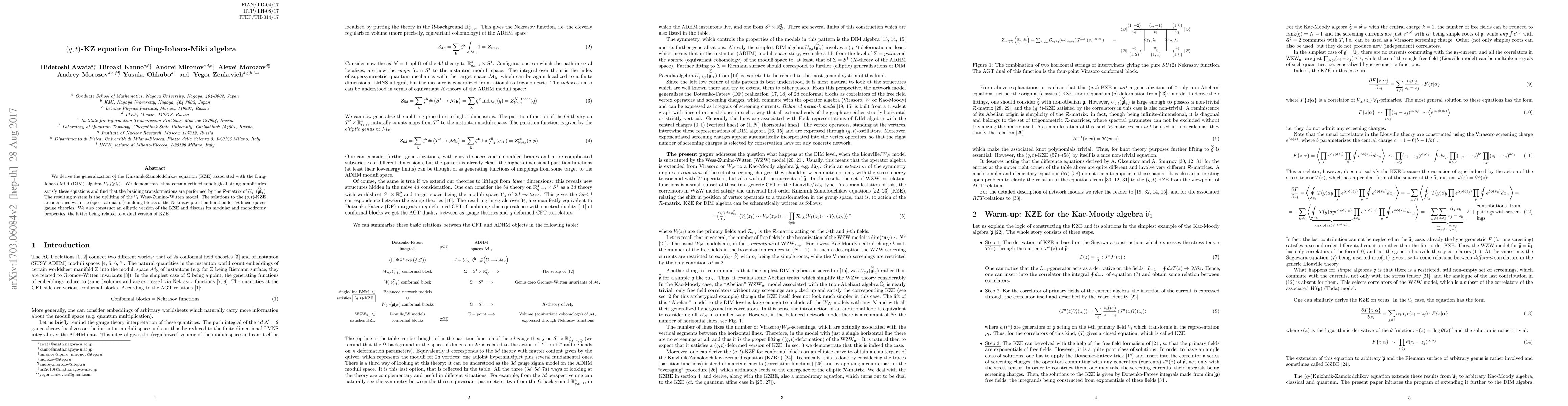 The paper introduces a novel approach to derive the (q,t)-KZ equation for the DIM algebra, using refined topological string amplitudes and identifying solutions with the Nekrasov partition function.