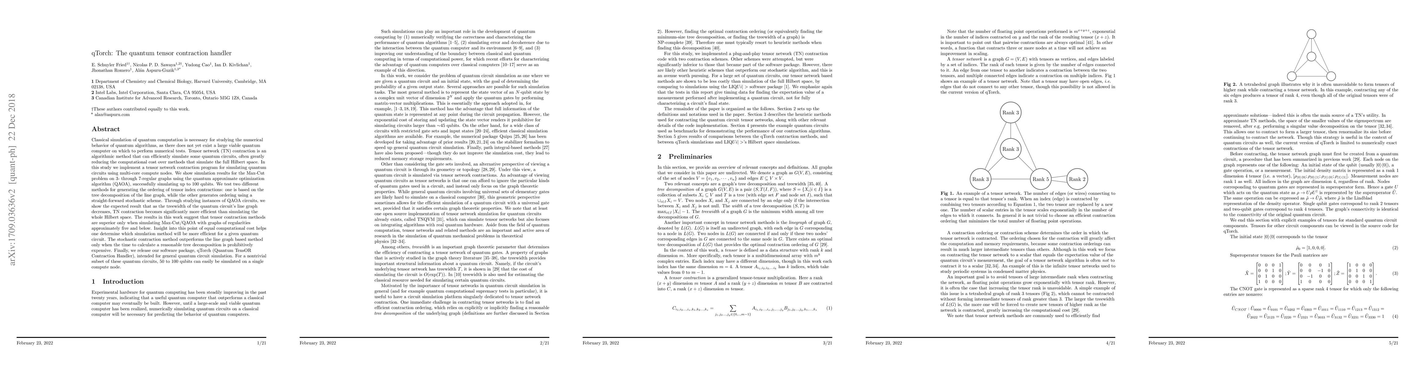 qTorch is a tensor network contraction program for simulating quantum circuits on multi-core compute nodes, demonstrating efficiency in simulating the Max-Cut problem using QAOA on regular graphs. The study finds that tensor contraction methods are more efficient than full Hilbert space simulations for quantum circuits with lower treewidths, particularly for regularities five and below.