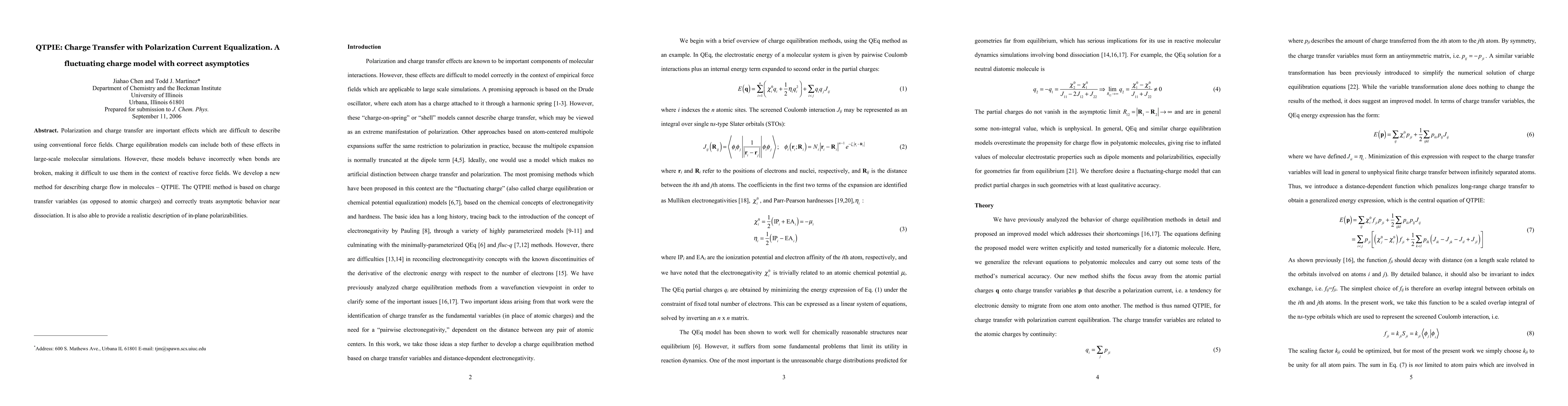 The paper introduces QTPIE, a new method for accurately describing charge flow in molecular simulations, particularly focusing on charge transfer and polarization current equalization. Unlike conventional models, QTPIE correctly handles asymptotic behavior during bond dissociation and provides a realistic depiction of in-plane polarizabilities.