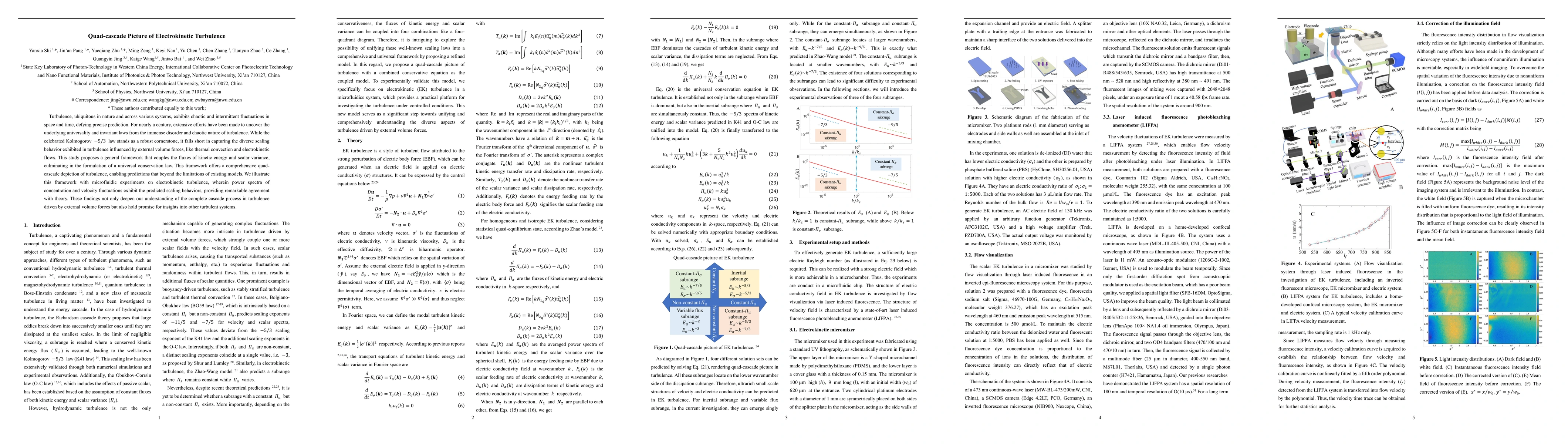 This paper proposes a unified quad-cascade picture to describe the diverse scaling laws of turbulence, revealing the coupling of kinetic energy and scalar variance fluxes. It extends beyond the traditional Kolmogorov -5/3 law, providing a comprehensive model that successfully explains additional scaling laws found in microfluidic electrokinetic turbulence.
