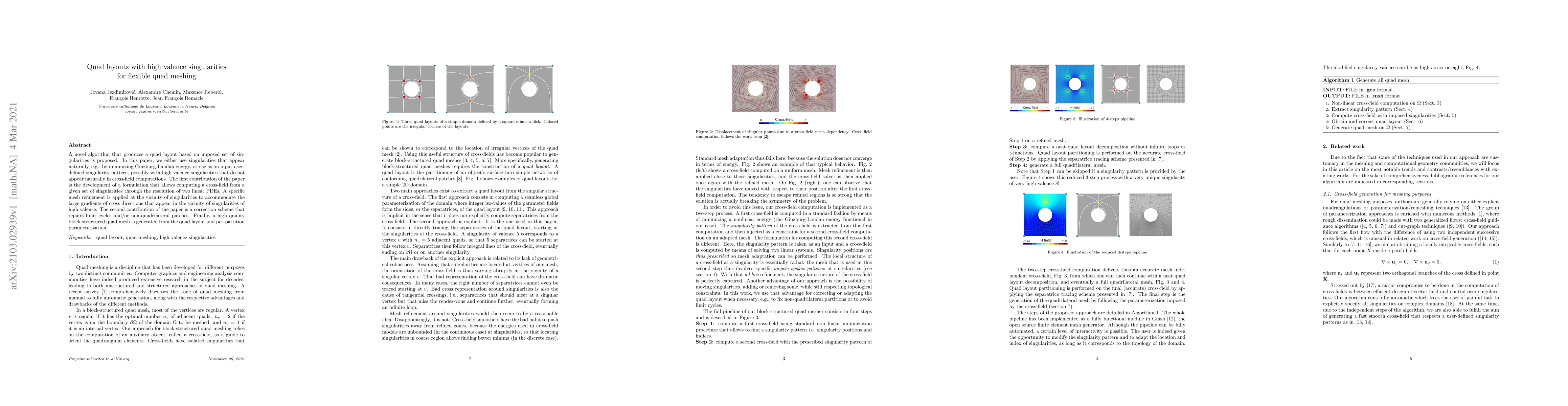 A novel algorithm generates high-quality quad mesh layouts with controlled singularities for flexible quad meshing, allowing for precise control over mesh quality and adaptability to complex geometries.