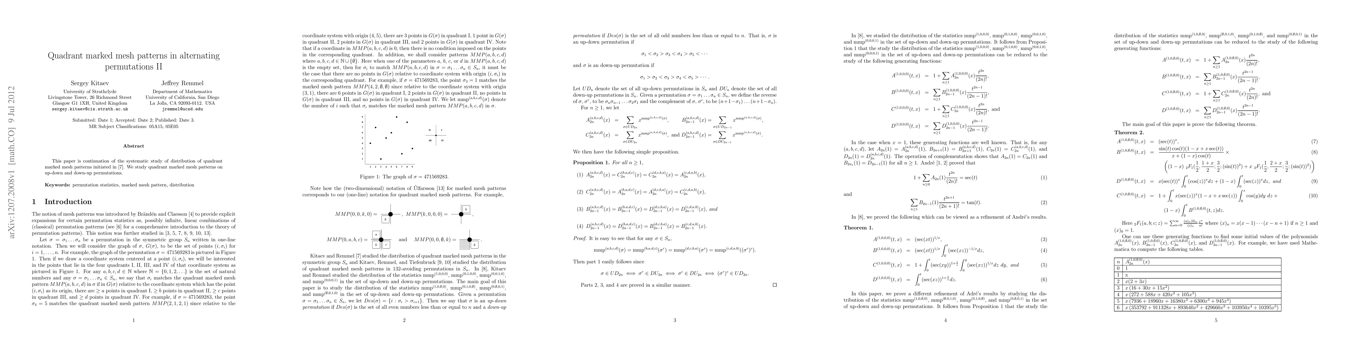 This paper explores the distribution of quadrant marked mesh patterns in up-down and down-up permutations, continuing the systematic study initiated in a previous work by Kitaev and Remmel.