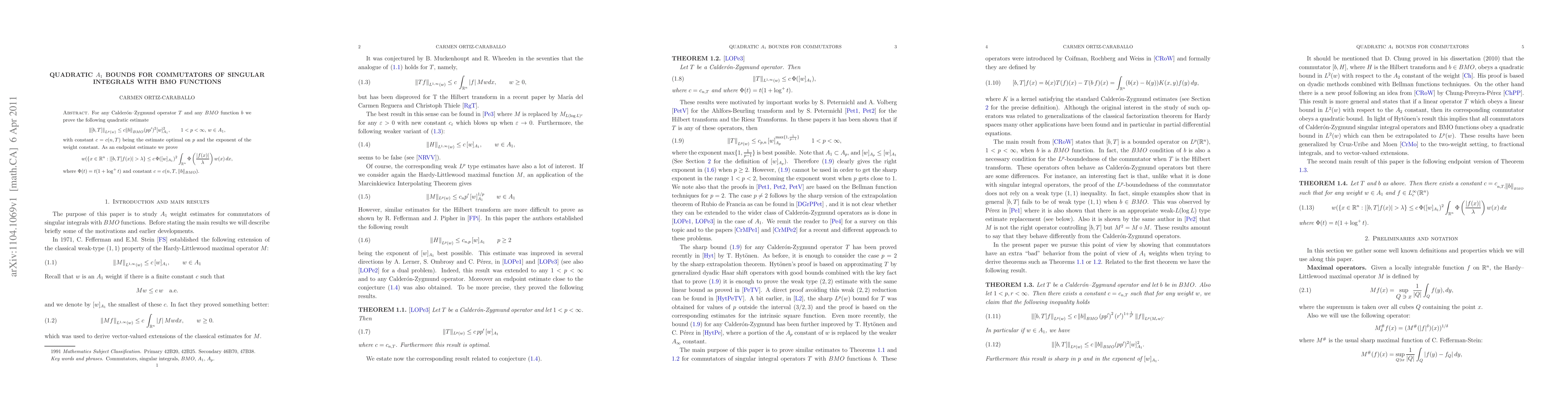 Summary: This paper establishes weighted quadratic $A_1$ bounds for commutators of singular integrals with BMO functions, providing estimates in both $L^p$ and $L\log L$ contexts. The results are expressed in terms of the $A_1$ constant of the weight.