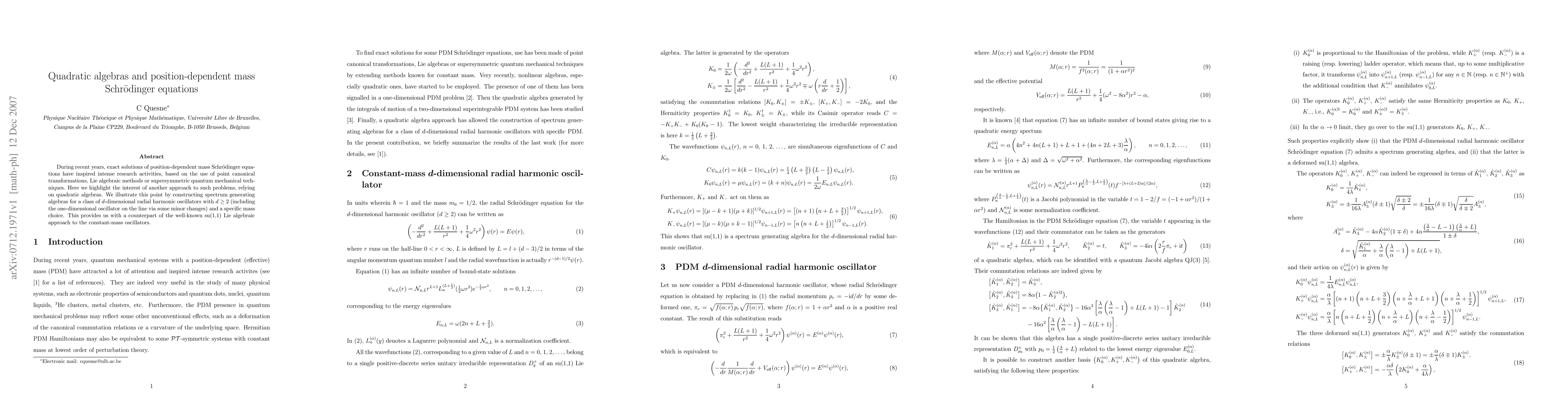 This paper explores the use of quadratic algebras to solve position-dependent mass Schrödinger equations, constructing spectrum generating algebras for $d$-dimensional radial harmonic oscillators. It provides an alternative to traditional Lie algebraic methods, offering a new perspective on the problem.
