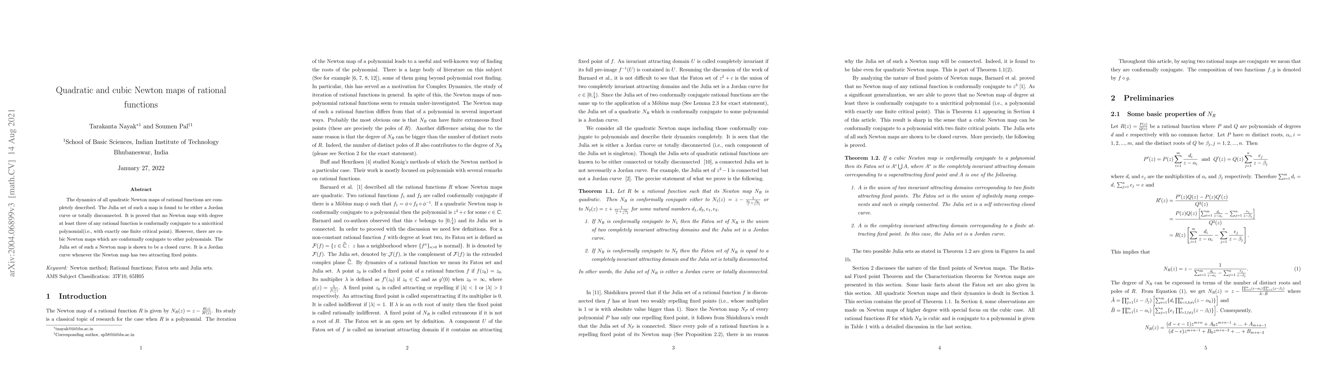 Research on quadratic and cubic Newton maps of rational functions reveals that their Julia sets are either Jordan curves or totally disconnected, with some cubic maps being conformally conjugate to other polynomials.