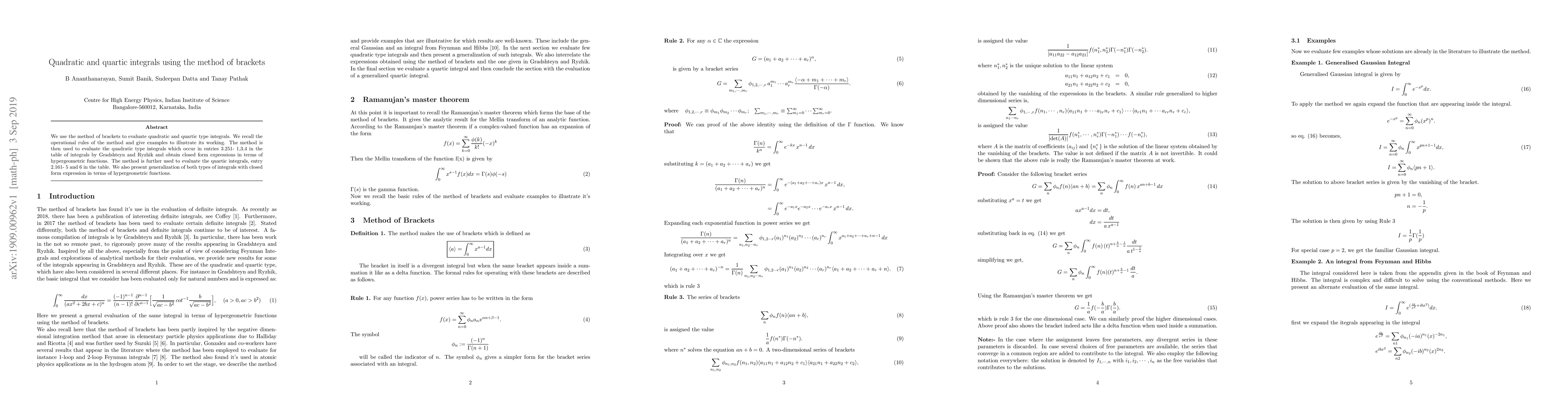 Researchers use the method of brackets to evaluate quadratic and quartic integrals, obtaining closed-form expressions in terms of hypergeometric functions, with applications in Gradshteyn and Ryzhik's table of integrals.