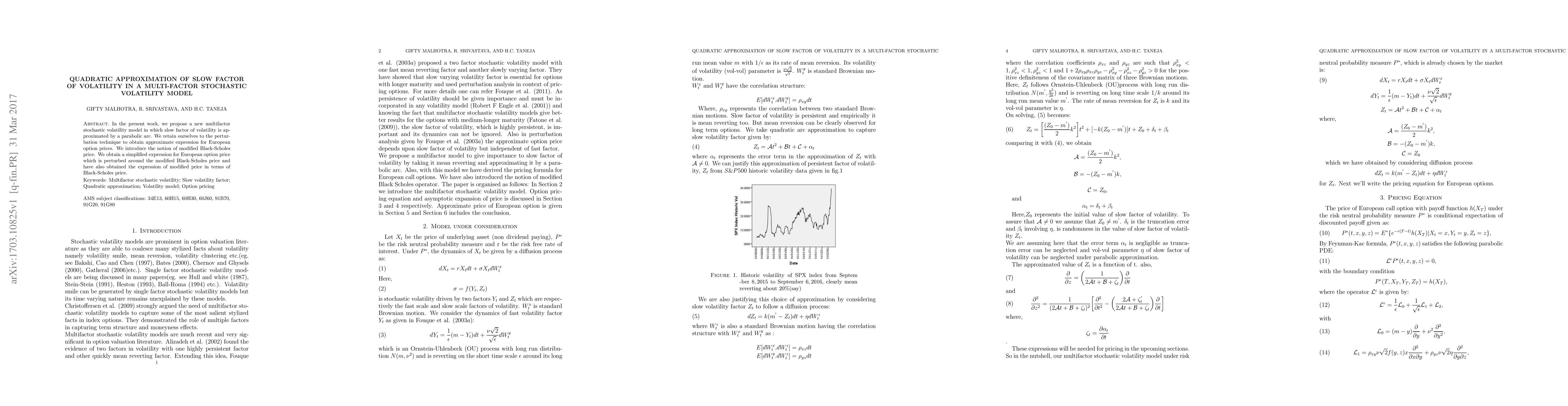 In the present work, we propose a new multifactor stochastic volatility model in which slow factor of volatility is approximated by a parabolic arc. We retain ourselves to the perturbation technique to obtain approximate expression for European option prices. We introduce the notion of modified Black-Scholes price. We obtain a simplified expression for European option price which is perturbed around the modified Black-Scholes price and have also obtained the expression of modified price in terms of Black-Scholes price.