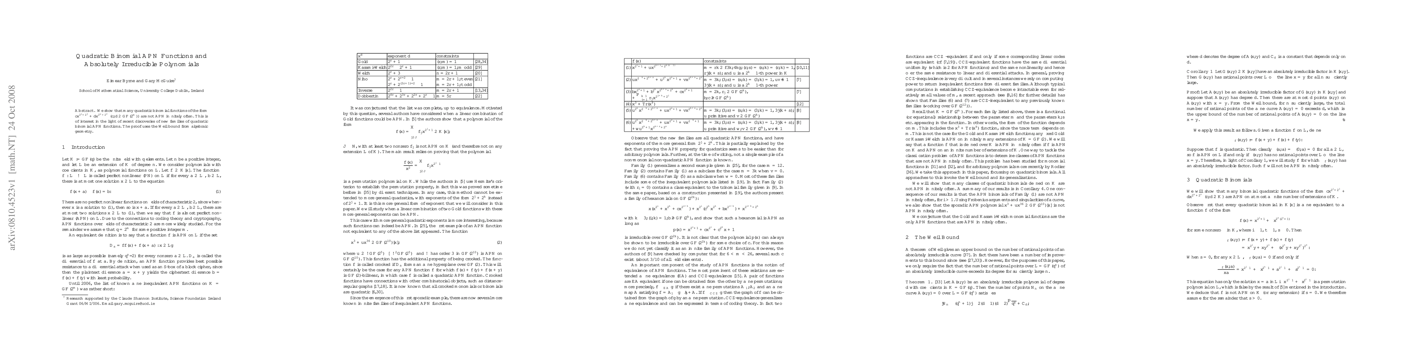Summary: The paper demonstrates that many quadratic binomial functions on a finite field of characteristic 2 fail to be APN functions infinitely often, challenging recent discoveries of new quadratic binomial APN families, and employs the Weil bound from algebraic geometry for its proof.