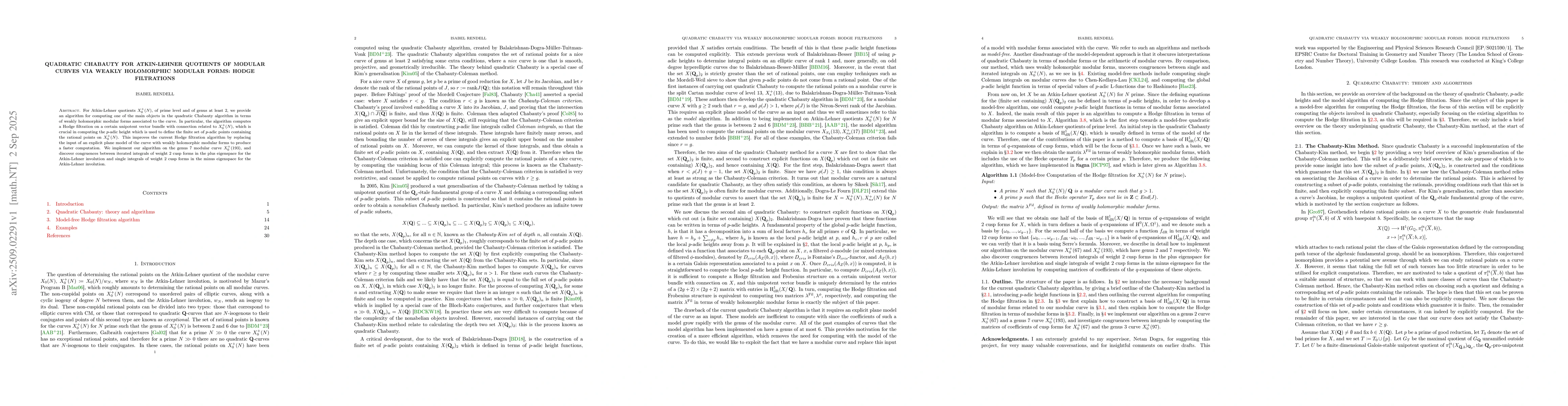 For Atkin-Lehner quotients $X_0^+(N)$, of prime level and of genus at least 2, we provide an algorithm for computing one of the main objects in the quadratic Chabauty algorithm in terms of weakly holomorphic modular forms associated to the curve. In particular, the algorithm computes a Hodge filtration on a certain unipotent vector bundle with connection related to $X_0^+(N)$, which is crucial in computing the $p$-adic height which is used to define the finite set of $p$-adic points containing the rational points on $X_0^+(N)$. This improves the current Hodge filtration algorithm by replacing the input of an explicit plane model of the curve with weakly holomorphic modular forms to produce a faster computation. We implement our algorithm on the genus 7 modular curve $X_0^+(193)$, and discover congruences between iterated integrals of weight 2 cusp forms in the plus eigenspace for the Atkin-Lehner involution and single integrals of weight 2 cusp forms in the minus eigenspace for the Atkin-Lehner involution.
