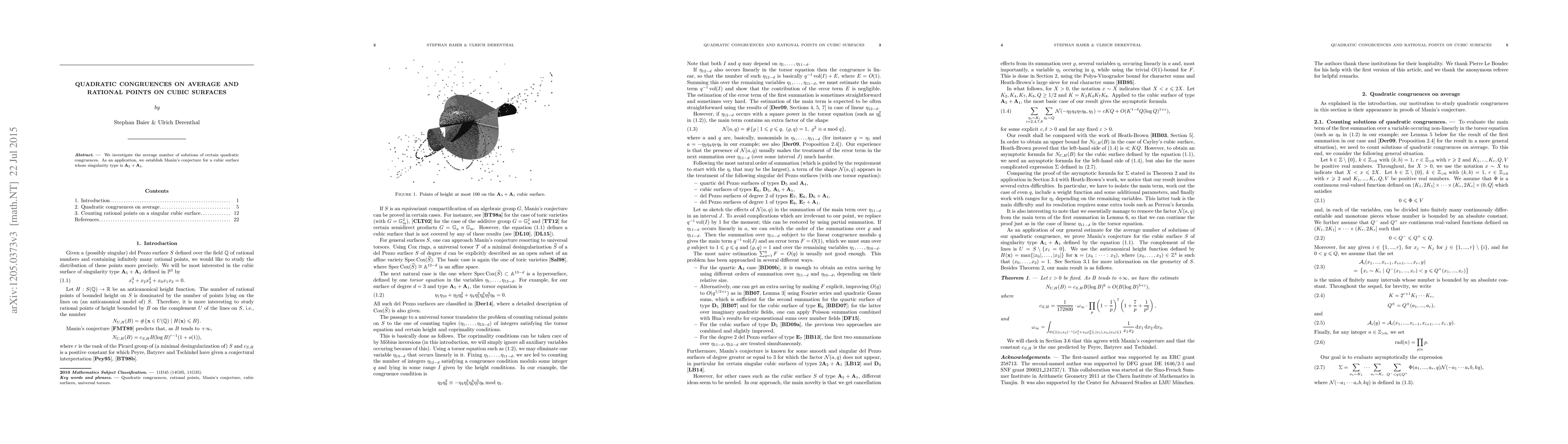 We investigate the average number of solutions of certain quadratic congruences. As an application, we establish Manin's conjecture for a cubic surface whose singularity type is A_5+A_1.