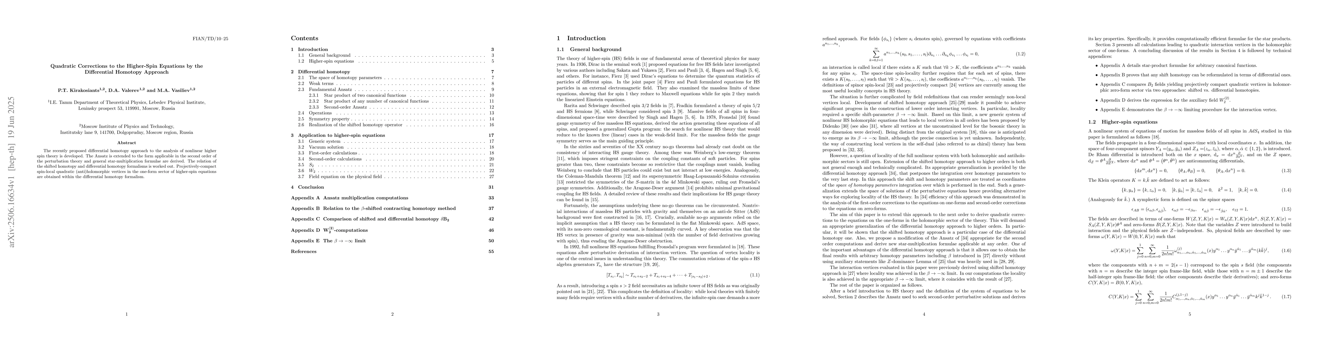 The recently proposed differential homotopy approach to the analysis of nonlinear higher spin theory is developed. The Ansatz is extended to the form applicable in the second order of the perturbation theory and general star-multiplication formulae are derived. The relation of the shifted homotopy and differential homotopy formalisms is worked out. Projectively-compact spin-local quadratic (anti)holomorphic vertices in the one-form sector of higher-spin equations are obtained within the differential homotopy formalism.