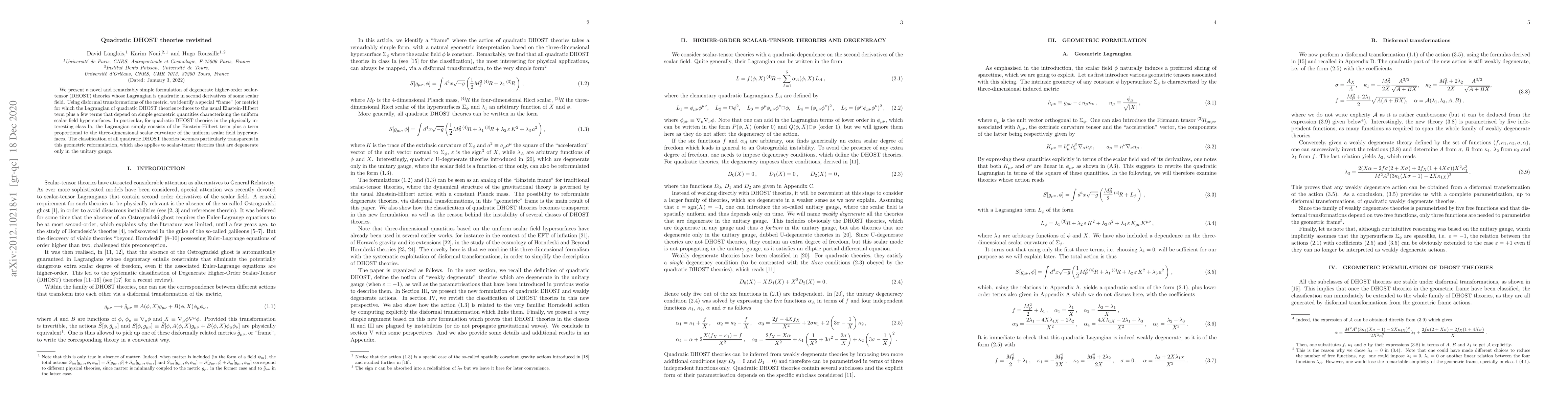 This paper introduces a simplified formulation of quadratic degenerate higher-order scalar-tensor (DHOST) theories, revealing that their Lagrangian can be expressed as the Einstein-Hilbert term plus geometric terms related to scalar field hypersurfaces, thus clarifying their classification. This geometric reformulation also applies to degenerate scalar-tensor theories in the unitary gauge.