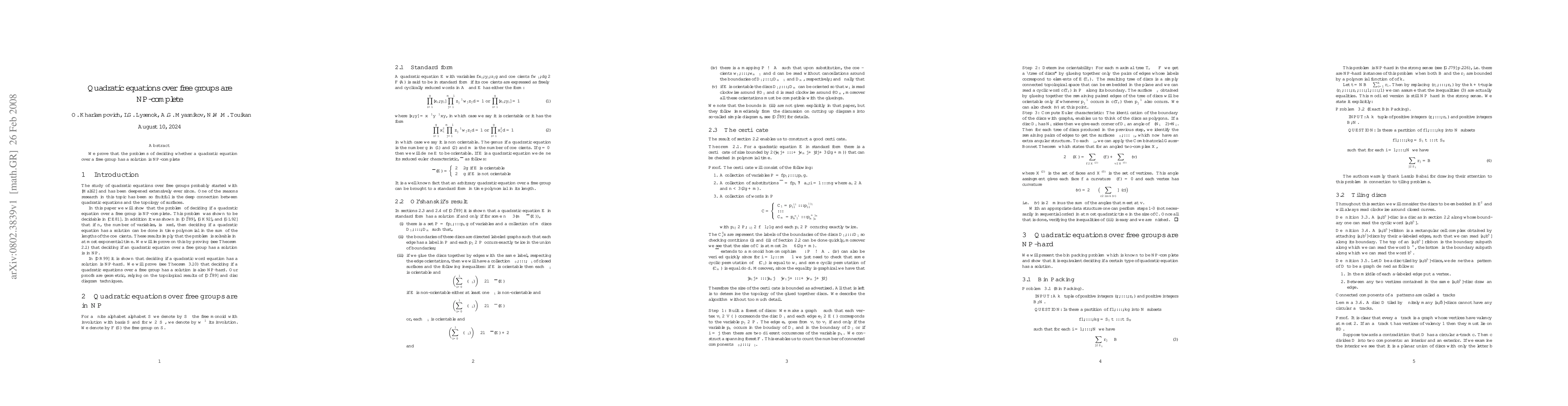 We prove that the problems of deciding whether a quadratic equation over a free group has a solution is NP-complete.