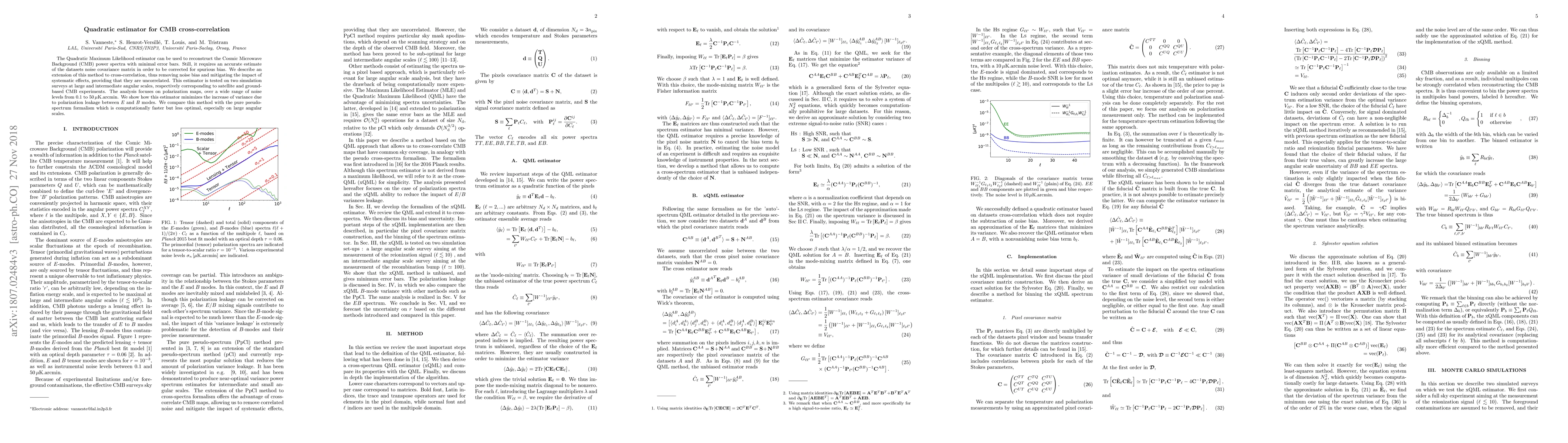 The Quadratic Maximum Likelihood estimator can be used to reconstruct the Cosmic Microwave Background (CMB) power spectra with minimal error bars. Still, it requires an accurate estimate of the datasets noise covariance matrix in order to be corrected for spurious bias. We describe an extension of this method to cross-correlation, thus removing noise bias and mitigating the impact of systematic effects, providing they are uncorrelated. This estimator is tested on two simulation surveys at large and intermediate angular scales, respectively corresponding to satellite and ground-based CMB experiments. The analysis focuses on polarization maps, over a wide range of noise levels from 0.1 to 50 muK.arcmin. We show how this estimator minimizes the increase of variance due to polarization leakage between E and B modes. We compare this method with the pure pseudo-spectrum formalism which is computationally faster but less optimal, especially on large angular scales.