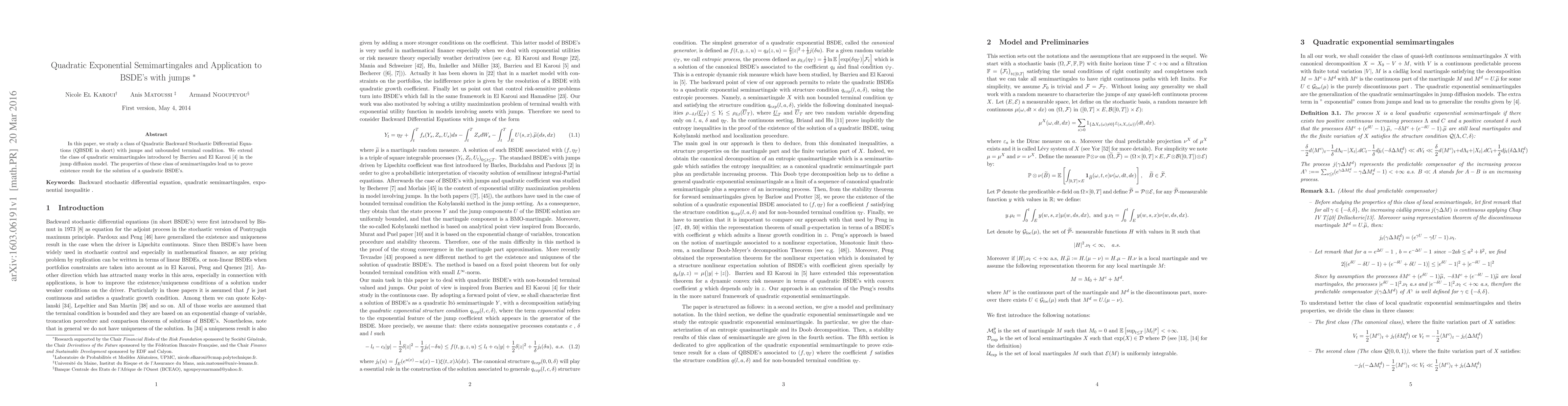 This paper investigates quadratic backward stochastic differential equations (QBSDEs) with jumps and unbounded terminal conditions, extending the class of quadratic semimartingales. It establishes the existence of solutions for these QBSDEs by leveraging the properties of the newly defined semimartingales.