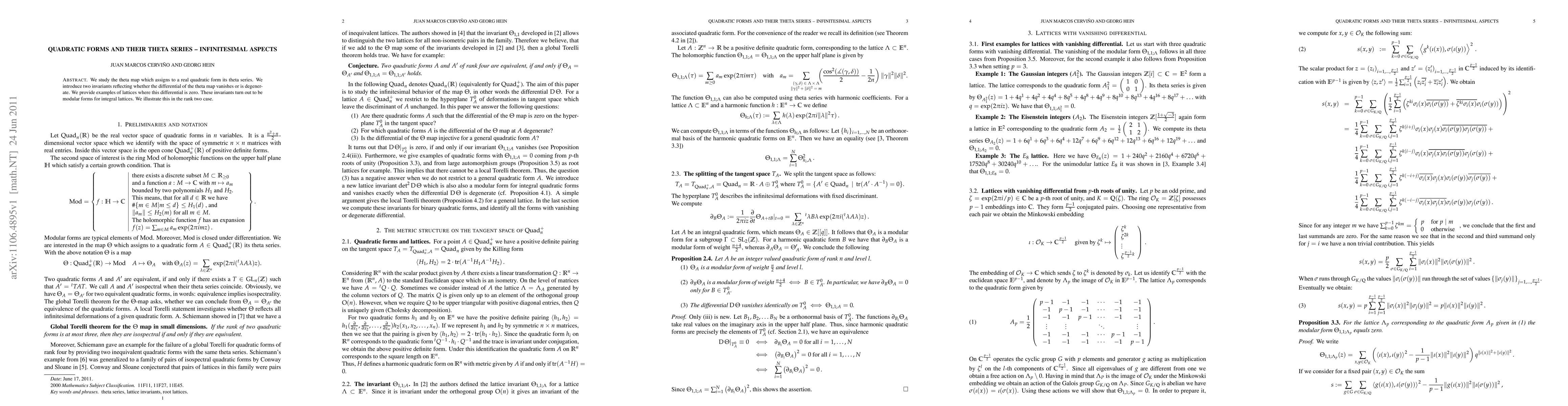 Researchers study how quadratic forms relate to theta series and introduce new invariants that turn out to be modular forms for integral lattices, providing insight into the differential of the theta map.