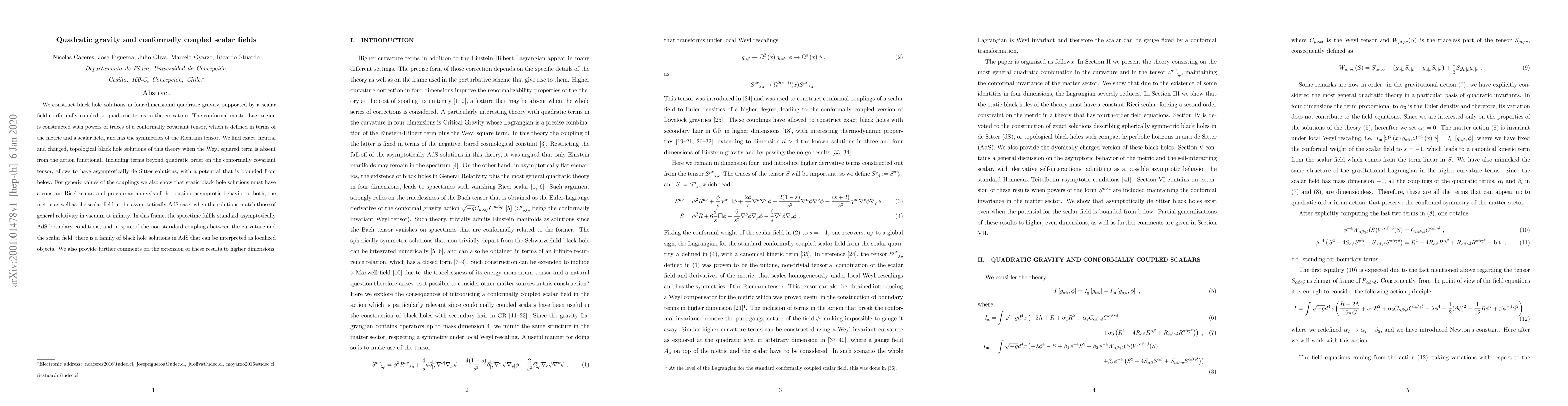 Researchers found black hole solutions in a new theory of gravity that combines quadratic gravity with a scalar field, showing that such black holes can exist even if the Weyl squared term is absent from the action functional.