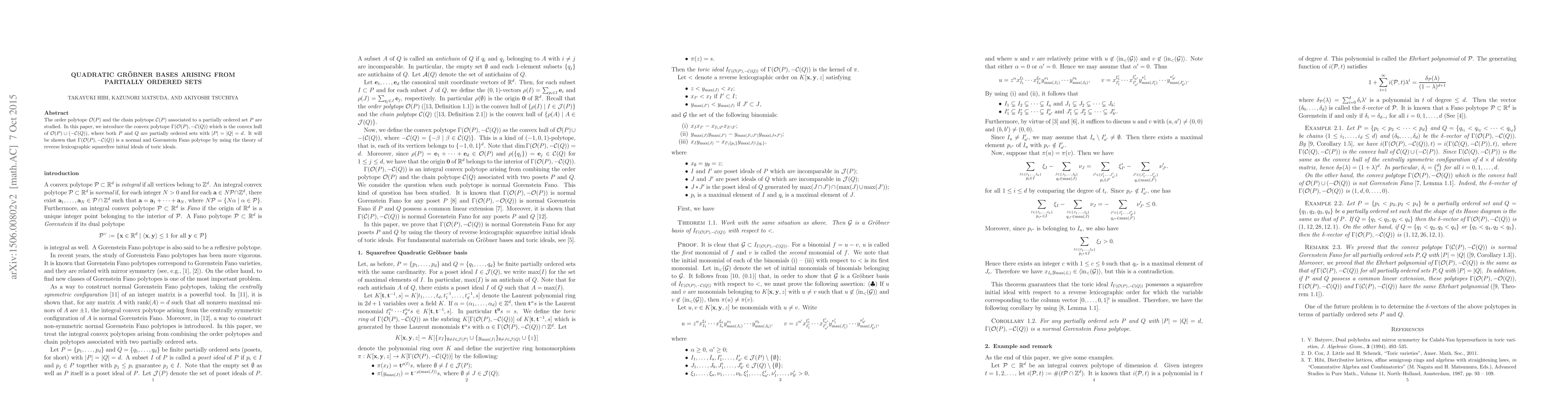 The order polytope $\mathcal{O}(P)$ and the chain polytope $\mathcal{C}(P)$ associated to a partially ordered set $P$ are studied. In this paper, we introduce the convex polytope $\Gamma(\mathcal{O}(P), -\mathcal{C}(Q))$ which is the convex hull of $\mathcal{O}(P) \cup (-\mathcal{C}(Q))$, where both $P$ and $Q$ are partially ordered sets with $|P|=|Q|=d$. It will be shown that $\Gamma(\mathcal{O}(P), -\mathcal{C}(Q))$ is a normal and Gorenstein Fano polytope by using the theory of reverse lexicographic squarefree initial ideals of toric ideals.