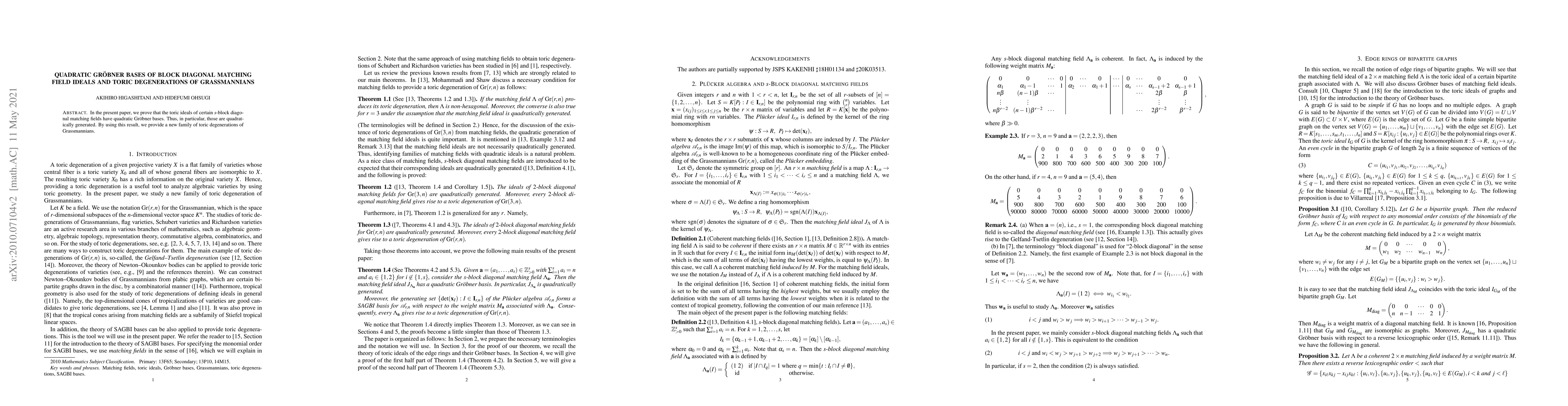 Summary: This paper demonstrates that toric ideals associated with specific $s$-block diagonal matching fields possess quadratic Gröbner bases, leading to new quadratically generated toric degenerations of Grassmannians.