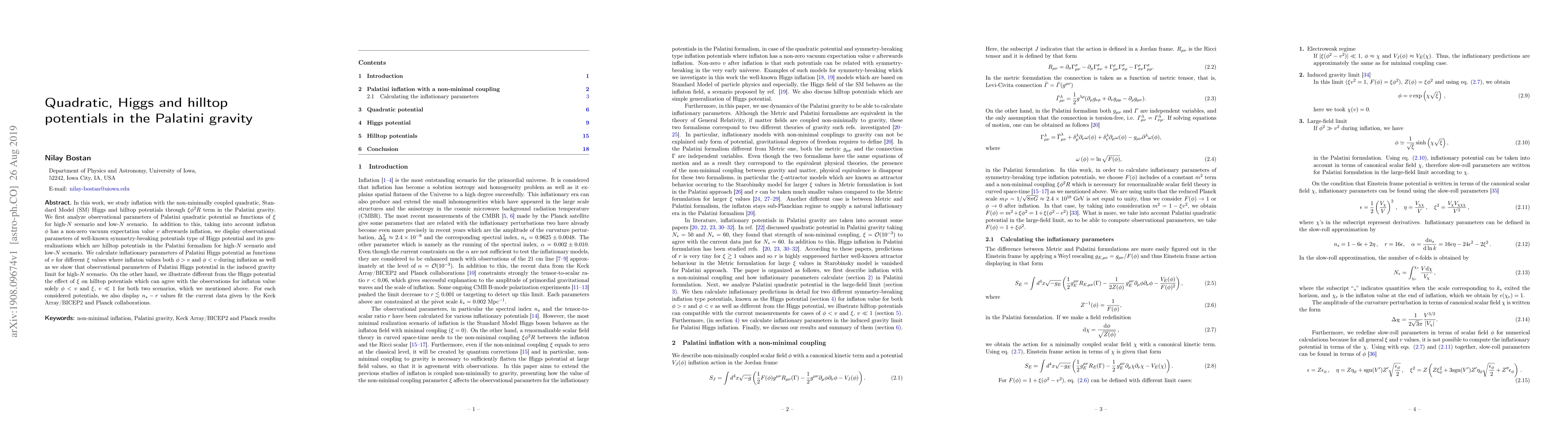 Palatini formalism for high-$N$ scenario and low-$N$ scenario. We calculate