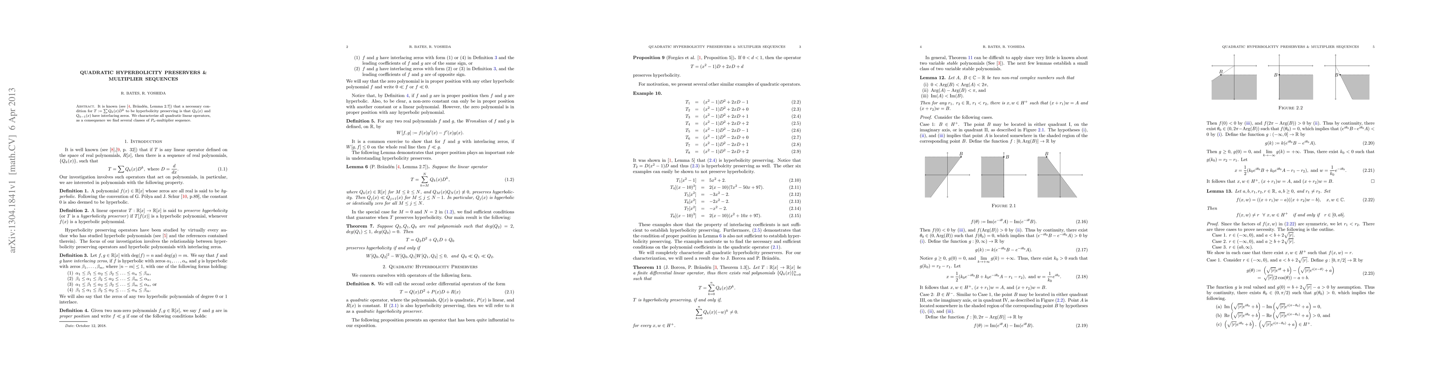 This paper characterizes quadratic linear operators that preserve hyperbolicity, establishing that such operators require the polynomials $Q_k(x)$ and $Q_{k-1}(x)$ to have interlacing zeros. It also identifies various classes of $P_n$-multiplier sequences arising from these operators.