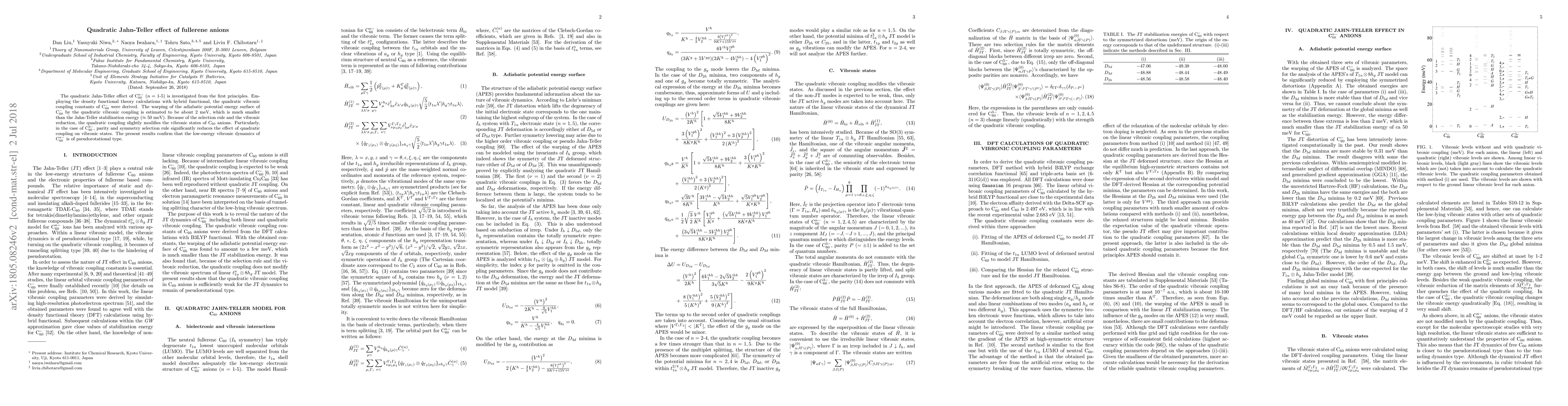 This paper investigates the quadratic Jahn-Teller effect in fullerene anions (C$_{60}^{n-}$, $n=1-5$) using density functional theory. The study finds that while the quadratic vibronic coupling warps the adiabatic potential energy surface by about 2 meV, it has a minor impact on the overall vibronic states due to selection rules and vibronic reduction.
