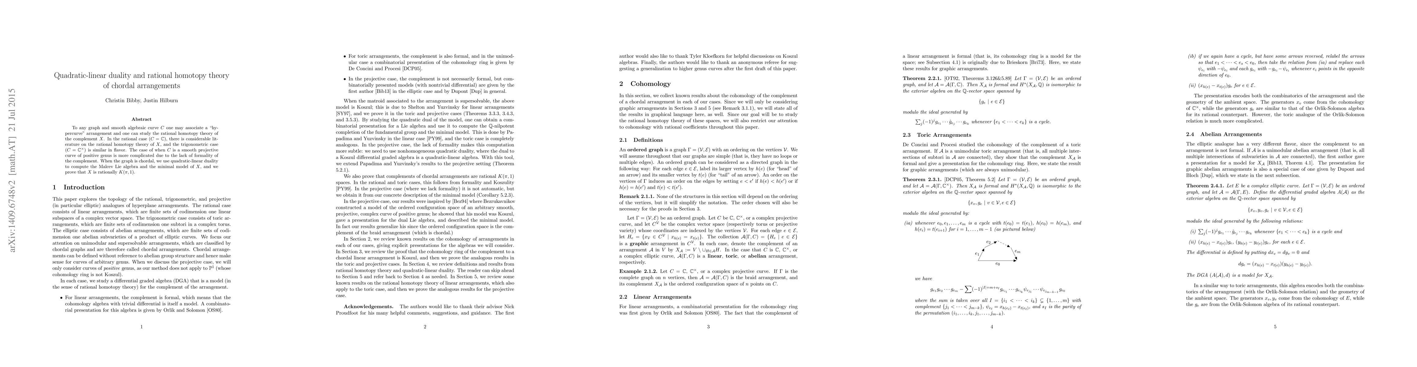 To any graph and smooth algebraic curve $C$ one may associate a "hypercurve" arrangement and one can study the rational homotopy theory of the complement $X$. In the rational case ($C=\mathbb{C}$), there is considerable literature on the rational homotopy theory of $X$, and the trigonometric case ($C = \mathbb{C}^\times$) is similar in flavor. The case of when $C$ is a smooth projective curve of positive genus is more complicated due to the lack of formality of the complement. When the graph is chordal, we use quadratic-linear duality to compute the Malcev Lie algebra and the minimal model of $X$, and we prove that $X$ is rationally $K(\pi,1)$.