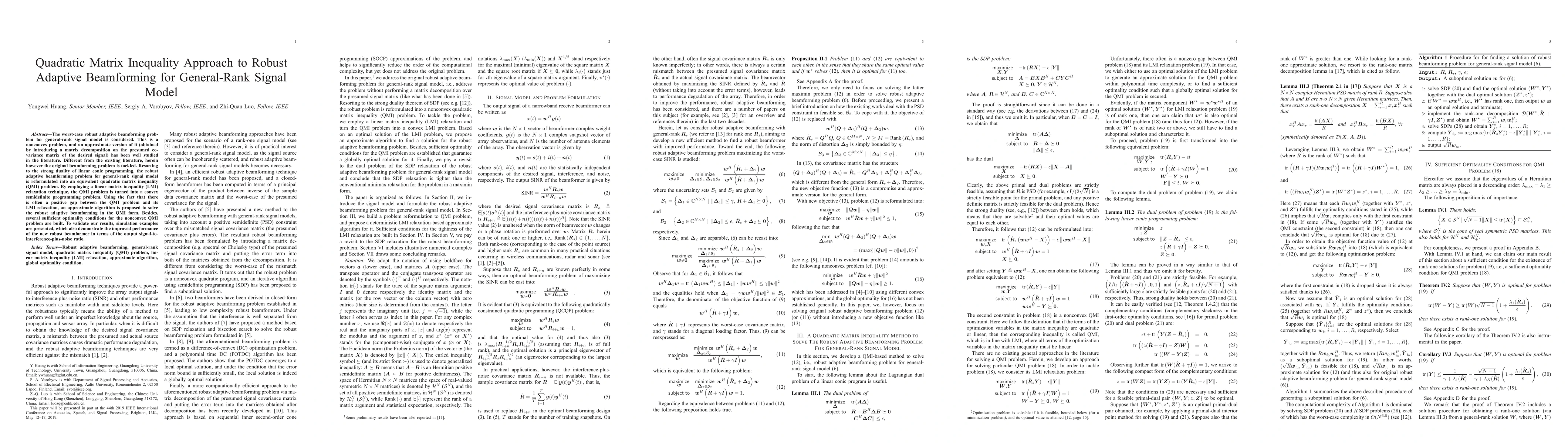 The worst-case robust adaptive beamforming problem for general-rank signal model is considered. This is a nonconvex problem, and an approximate version of it (obtained by introducing a matrix decomposition on the presumed covariance matrix of the desired signal) has been well studied in the literature. Different from the existing literature, herein however the original beamforming problem is tackled. Resorting to the strong duality of linear conic programming, the robust adaptive beamforming problem for general-rank signal model is reformulated into an equivalent quadratic matrix inequality (QMI) problem. By employing a linear matrix inequality (LMI) relaxation technique, the QMI problem is turned into a convex semidefinite programming problem. Using the fact that there is often a positive gap between the QMI problem and its LMI relaxation, an approximate algorithm is proposed to solve the robust adaptive beamforming in the QMI form. Besides, several sufficient optimality conditions for the nonconvex QMI problem are built. To validate our results, simulation examples are presented, which also demonstrate the improved performance of the new robust beamformer in terms of the output signal-to-interference-plus-noise ratio.