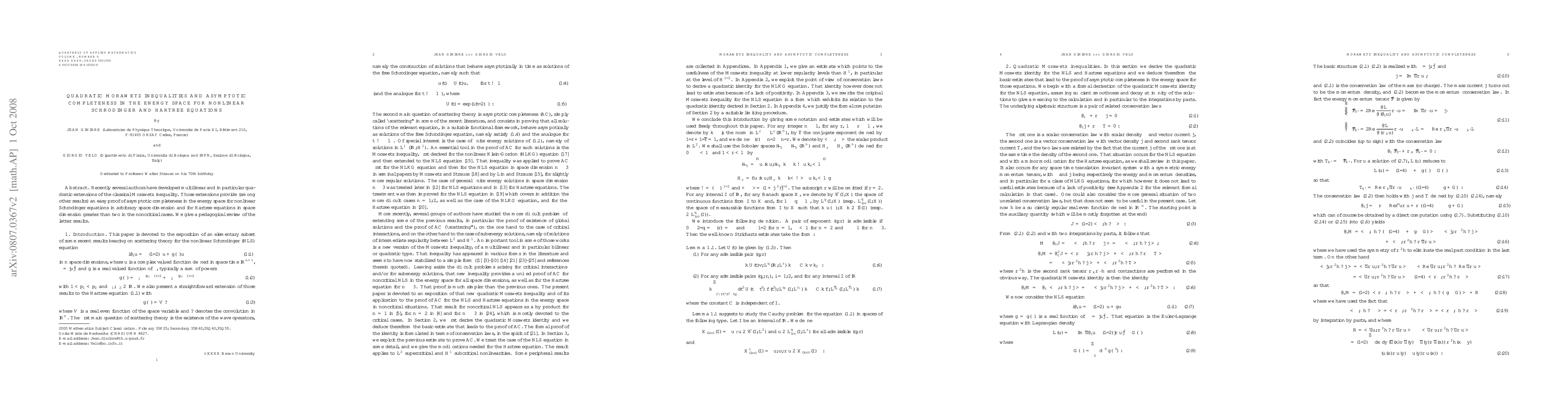 Recently several authors have developed multilinear and in particular quadratic extensions of the classical Morawetz inequality. Those extensions provide (among other results) an easy proof of asymptotic completeness in the energy space for nonlinear Schr"odinger equations in arbitrary space dimension and for Hartree equations in space dimension greater than two in the noncritical cases. We give a pedagogical review of the latter results.