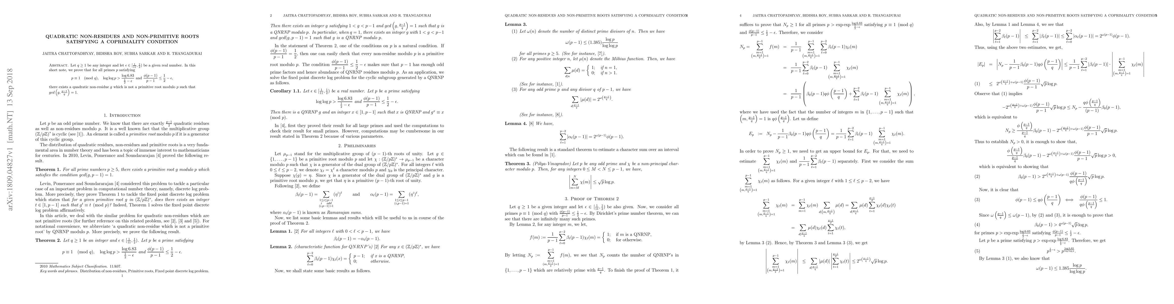 This paper proves that under certain conditions on prime $p$ and with a given $epsilon$, there exists a quadratic non-residue $g$ modulo $p$ that is not a primitive root and is coprime with $rac{p-1}{q}$.
