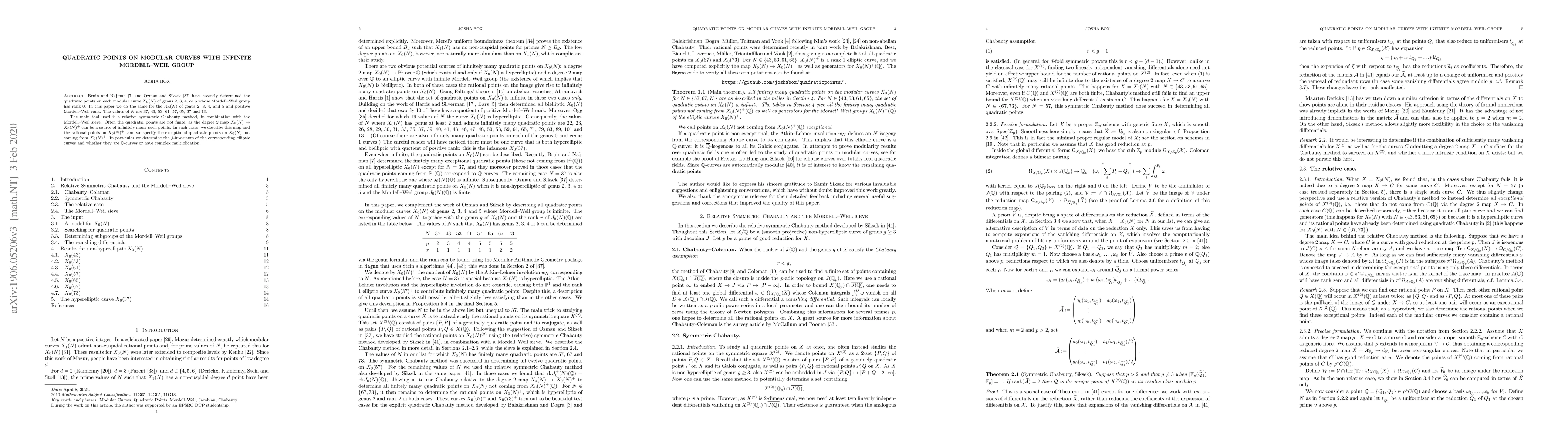 This paper extends recent findings on quadratic points on modular curves $X_0(N)$ of genus 2-5 by determining these points for curves with positive Mordell-Weil rank. It utilizes a relative symmetric Chabauty method and describes the degree 2 map, identifying exceptional quadratic points and their $j$-invariants, while addressing the infinite nature of some points.