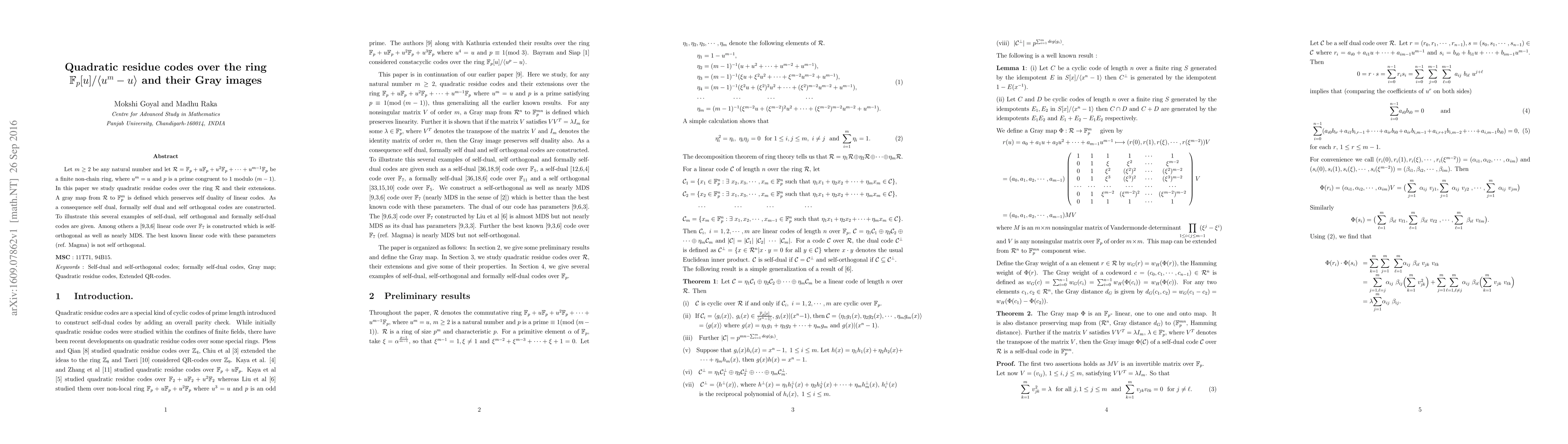 This paper investigates quadratic residue codes over the ring $\mathbb{F}_{p}[u]/\langle u^m-u\rangle$ and constructs their Gray images, leading to the creation of self-dual, formally self-dual, and self-orthogonal codes. A notable example includes a [9,3,6] linear code over $\mathbb{F}_{7}$ that is self-orthogonal and nearly MDS, outperforming existing codes.