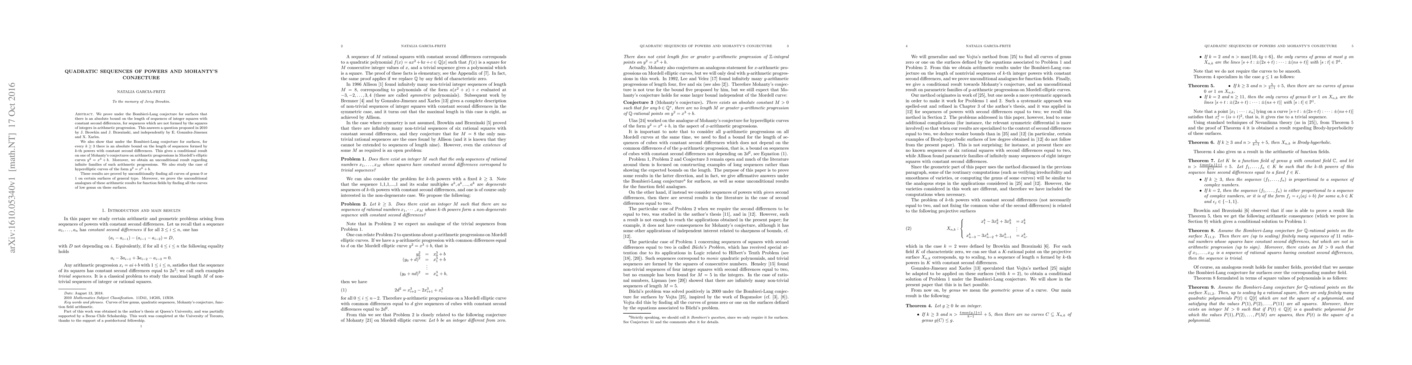 This research paper proves an absolute bound on sequences of integer squares with constant second differences under certain conditions, providing a conditional result on Mohanty's Conjecture and unconditional results for infinite families and hyperelliptic curves.