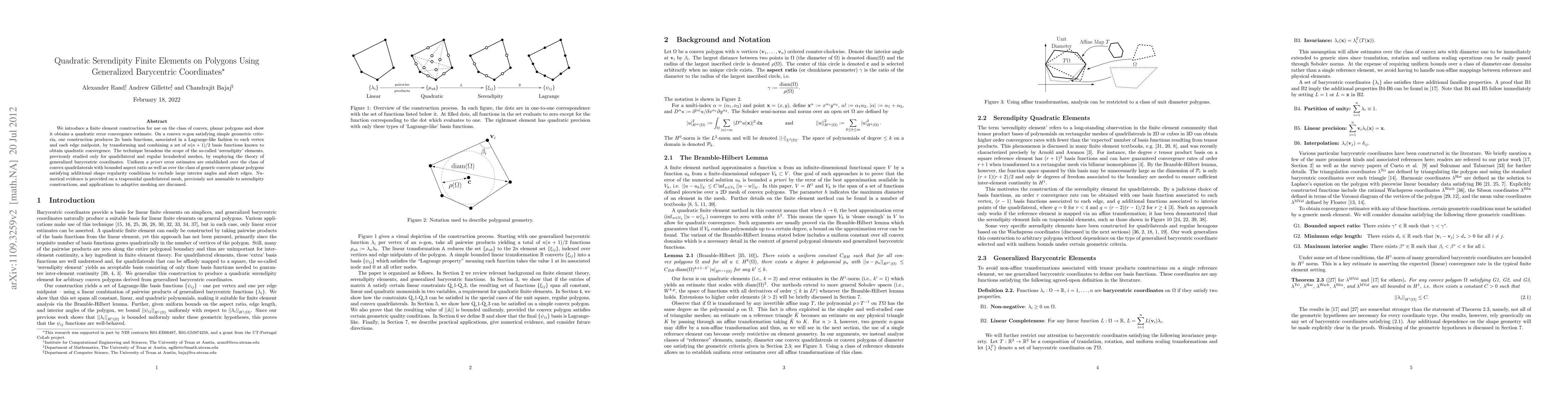 We introduce a finite element construction for use on the class of convex, planar polygons and show it obtains a quadratic error convergence estimate. On a convex n-gon satisfying simple geometric criteria, our construction produces 2n basis functions, associated in a Lagrange-like fashion to each vertex and each edge midpoint, by transforming and combining a set of n(n+1)/2 basis functions known to obtain quadratic convergence. The technique broadens the scope of the so-called `serendipity' elements, previously studied only for quadrilateral and regular hexahedral meshes, by employing the theory of generalized barycentric coordinates. Uniform `a priori' error estimates are established over the class of convex quadrilaterals with bounded aspect ratio as well as over the class of generic convex planar polygons satisfying additional shape regularity conditions to exclude large interior angles and short edges. Numerical evidence is provided on a trapezoidal quadrilateral mesh, previously not amenable to serendipity constructions, and applications to adaptive meshing are discussed.