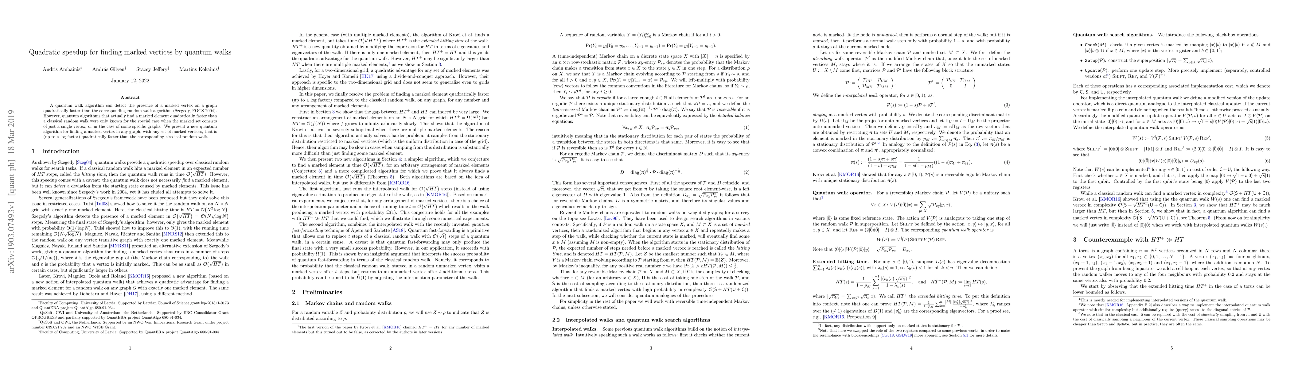 This research introduces a new quantum algorithm that finds a marked vertex in any graph with marked vertices quadratically faster than classical random walk methods, up to a logarithmic factor.