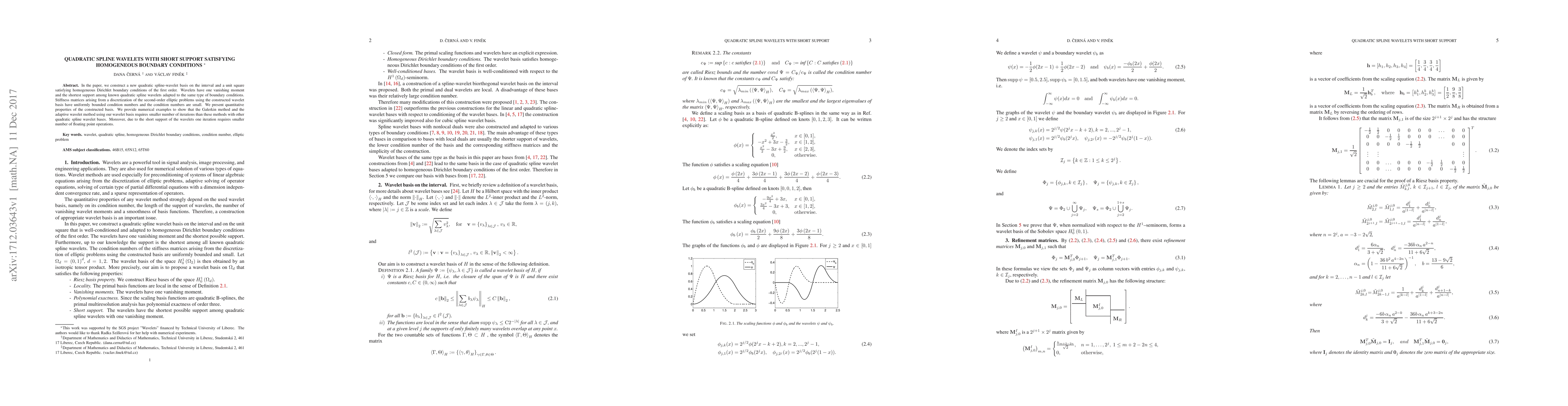 This paper constructs a new quadratic spline-wavelet basis with short support and homogeneous Dirichlet boundary conditions, demonstrating improved efficiency in solving second-order elliptic problems. The wavelet basis leads to a smaller number of iterations and floating point operations in numerical methods compared to other bases.