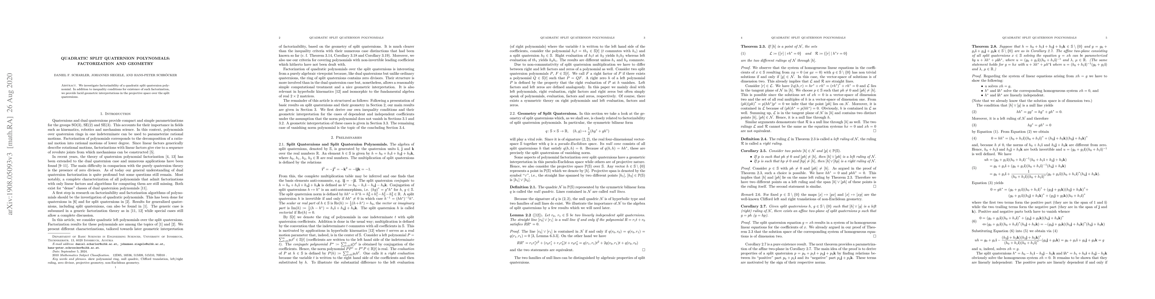 This paper explores the factorization of quadratic split quaternion polynomials, presenting conditions for their existence and offering geometric interpretations in the projective space over split quaternions.