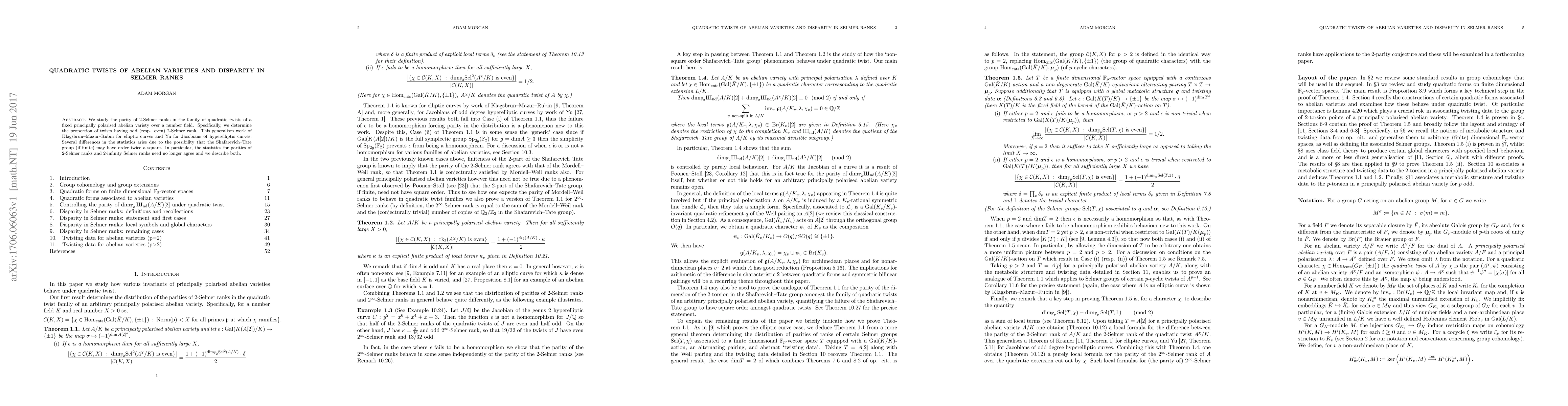 The paper investigates the parity distribution of 2-Selmer ranks in quadratic twists of a given principally polarised abelian variety over a number field, generalising prior results for elliptic curves and hyperelliptic Jacobians. It highlights discrepancies in statistics due to the Shafarevich-Tate group's potential order, noting that the parity of 2-Selmer and 2-infinity Selmer ranks may differ.