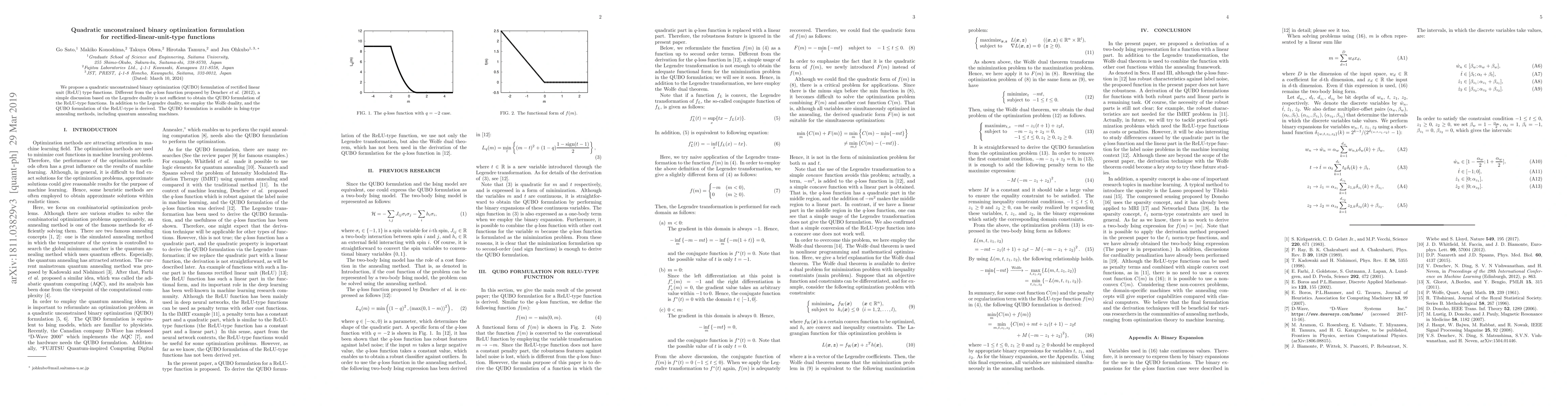 We propose a quadratic unconstrained binary optimization (QUBO) formulation of rectified linear unit (ReLU) type functions. Different from the q-loss function proposed by Denchev et al. (2012), a simple discussion based on the Legendre duality is not sufficient to obtain the QUBO formulation of the ReLU-type functions. In addition to the Legendre duality, we employ the Wolfe duality, and the QUBO formulation of the ReLU-type is derived. The QUBO formulation is available in Ising-type annealing methods, including quantum annealing machines.